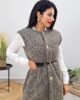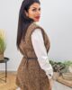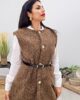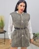Γιλέκο από χοντρό πλεκτό ύφασμα βισκόζη. Το γιλέκο είναι σε άνετη εφαρμογή με εντυπωσιακά χρυσά κουμπιά και ζώνη με αγκράφα στην μέση.