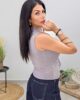 Πλεκτό γιλέκο από ελαστική βισκόζη. Το γιλέκο είναι σε άνετη εφαρμογή, κουμπώνει μπροστά με κουμπί, έχει γιακά και είναι μεσάτο και ασύμμετρο στο τελείωμα.