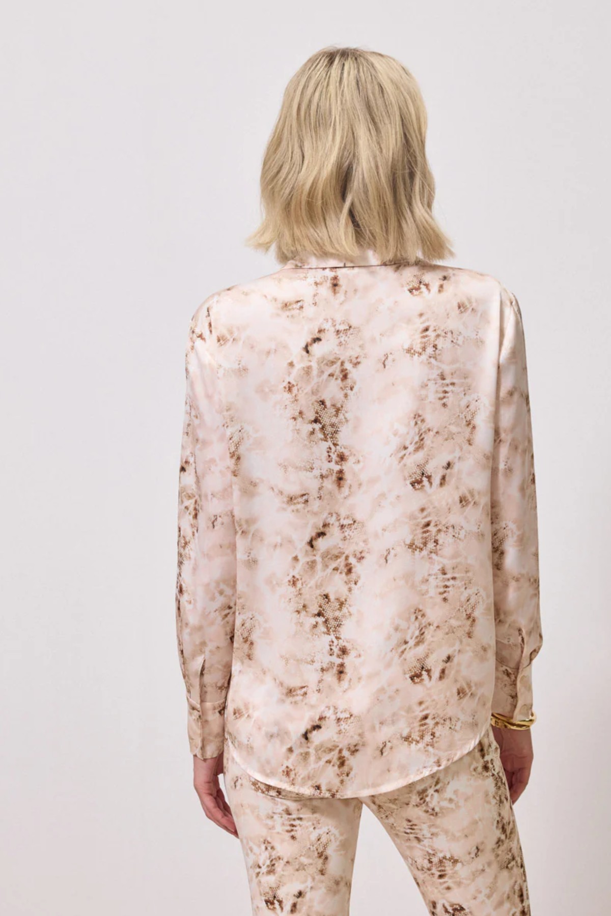 Πουκάμισο από σταθερό σατέν ύφασμα. Το πουκάμισο έχει άνετη εφαρμογή, κουμπώνει μπροστά με κουμπιά και στην μανσέτα. Το προιόν είναι ελληνικής εταιρείας.