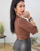 Top από ελαστικό πλεκτό ύφασμα. Το μπλουζάκι είναι σε άνετη εφαρμογή με κλειστή κυματιστή λαιμόκοψη και κυματιστό τελείωμα στο μανίκι. Το μανίκι είναι 3/4.