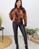 Πουκάμισο από σταθερή εμπριμέ μουσελίνα. Το πουκάμισο είναι oversized σε άνετη εφαρμογή, κουμπώνει μπροστά με κουμπιά και στην μανσέτα, είναι ασύμμετρο και έχει ζώνη που μπορεί να χρησιμοποιηθεί και ως γραβάτα. Το προϊόν είναι ελληνικής εταιρείας.