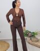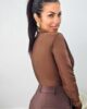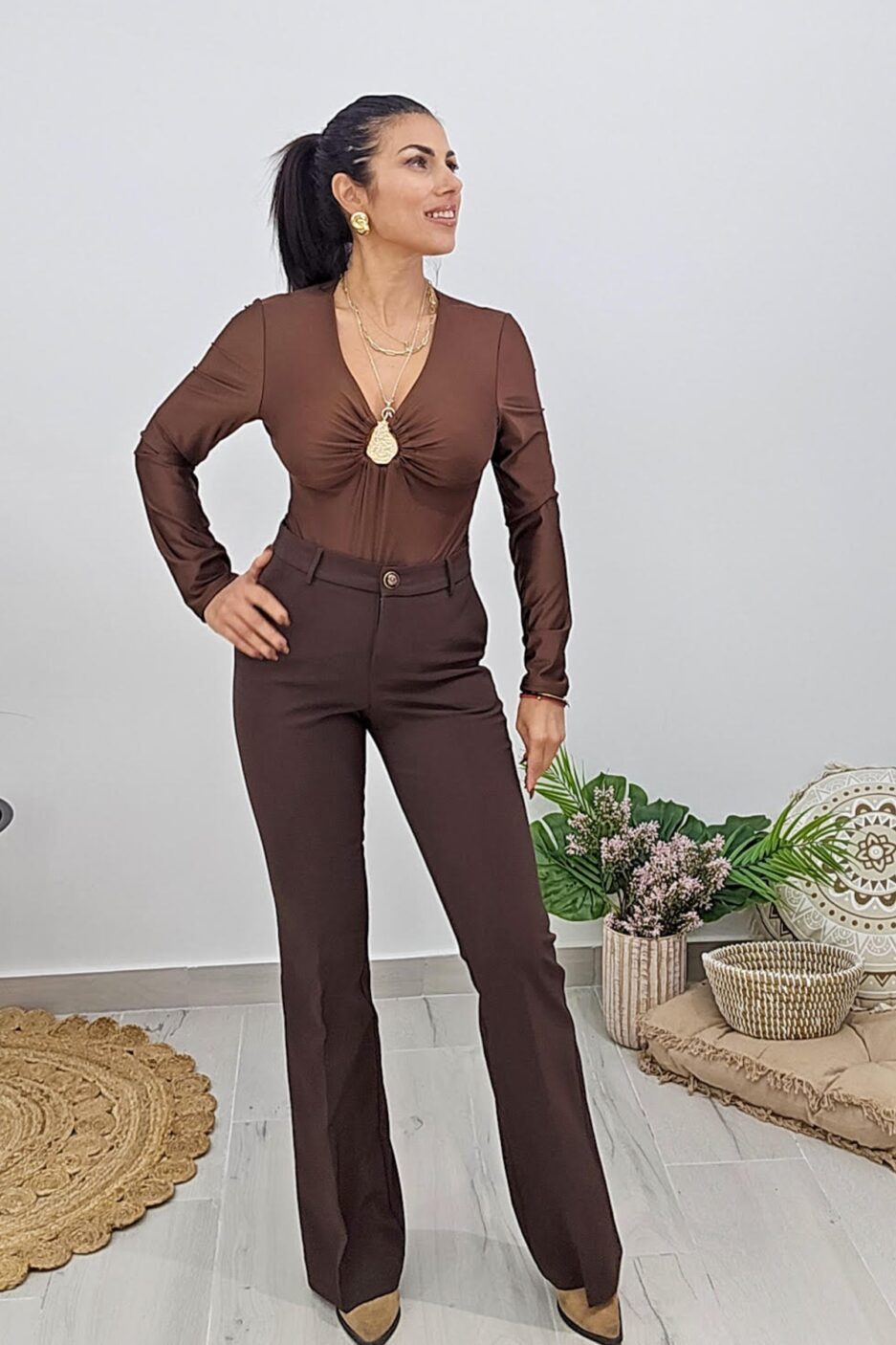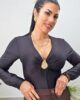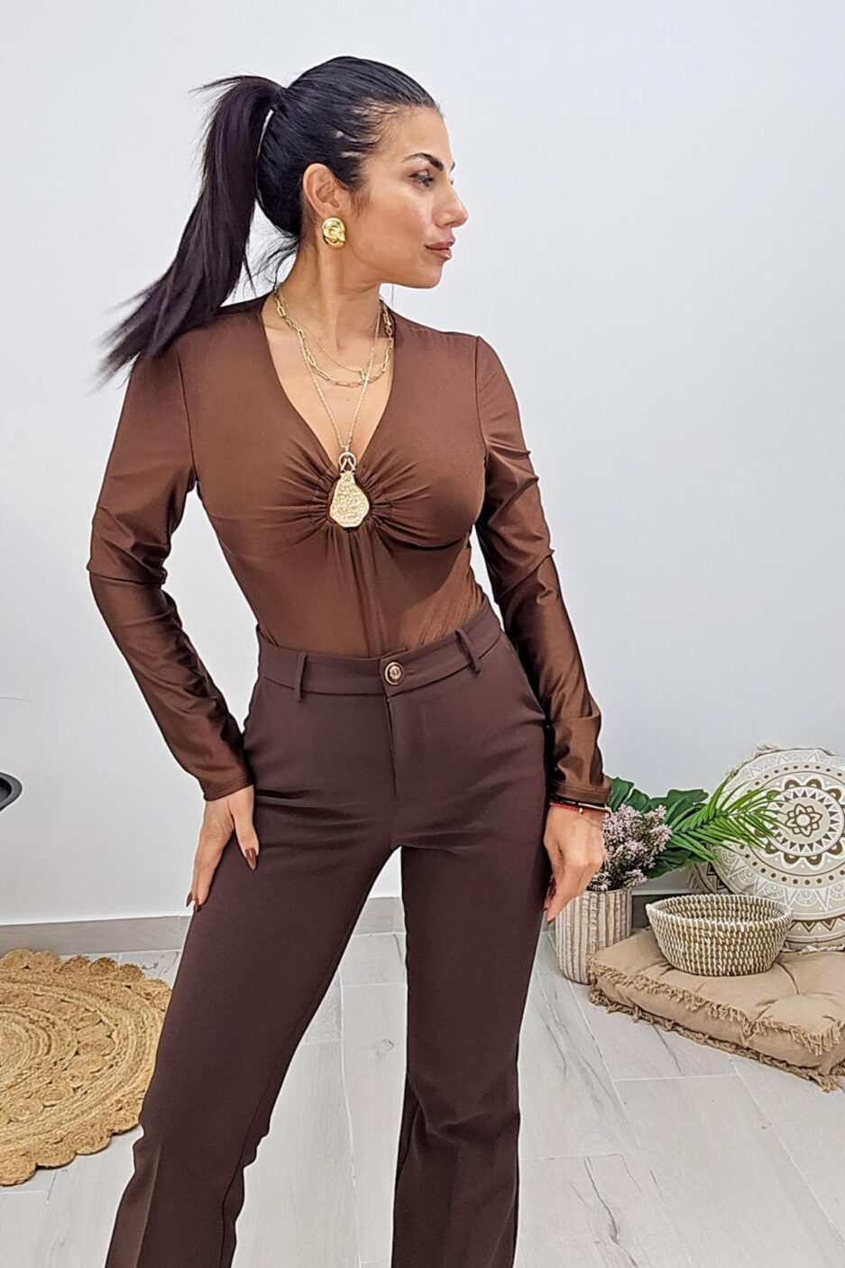Κορμάκι από ελαστικό ζέρσεϊ ύφασμα. Το κορμάκι είναι σε άνετη εφαρμογή με μακρύ μανίκι και χρυσό κόσμημα στο μπούστο που το κάνουν πιο εντυπωσιακό.