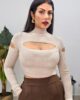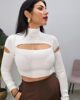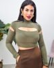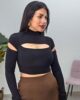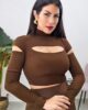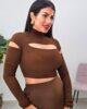 Top crop από ελαστικό πλεκτό ύφασμα με βισκόζη. Το τοπ είναι σε άνετη εφαρμογή με ανοίγματα στο στήθος και στα χέρια, έχει μαλακή υφή και μακρύ μανίκι.