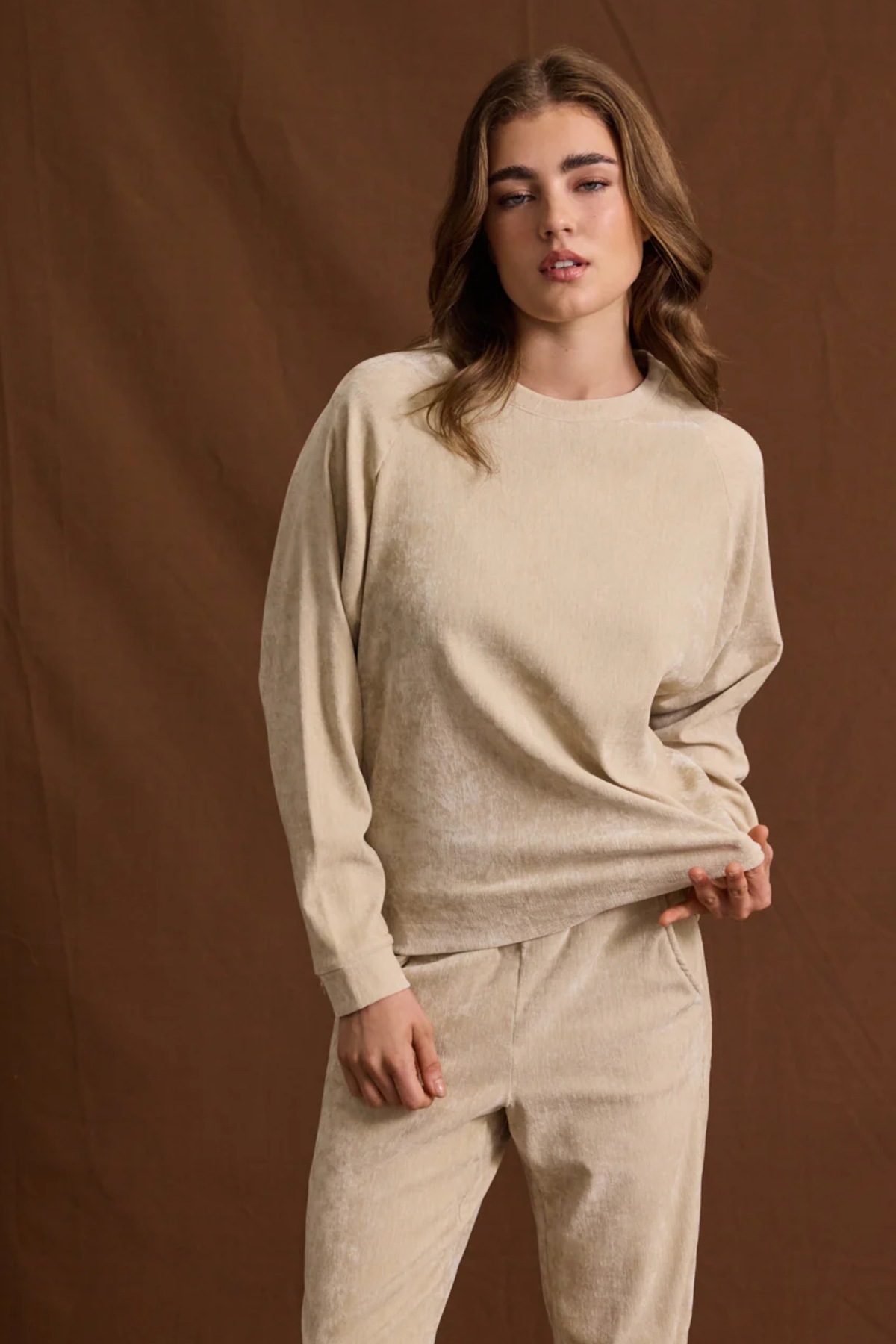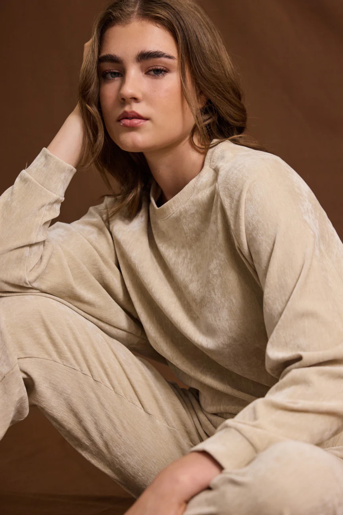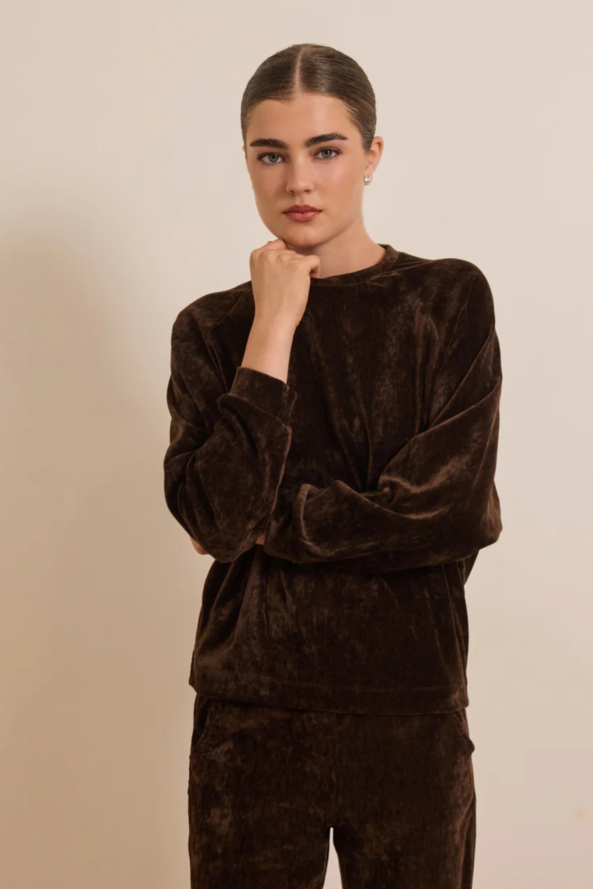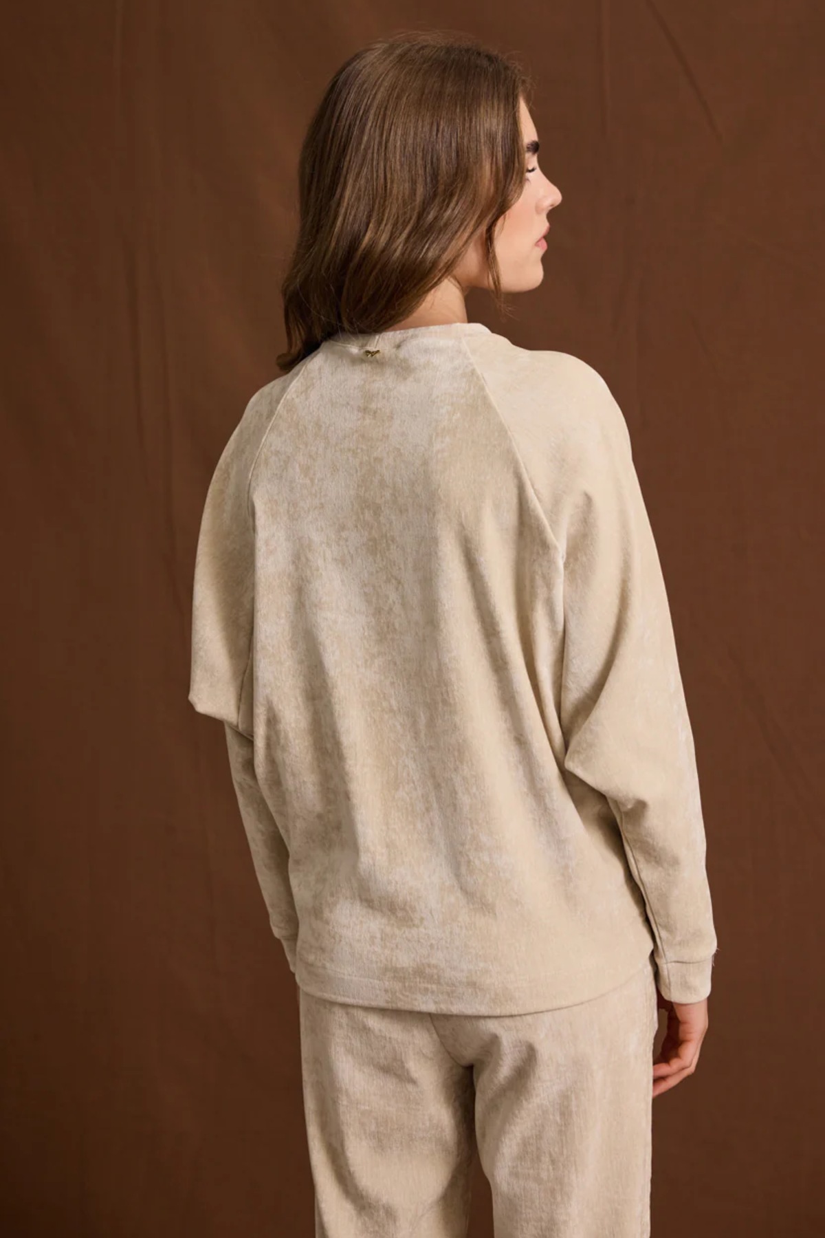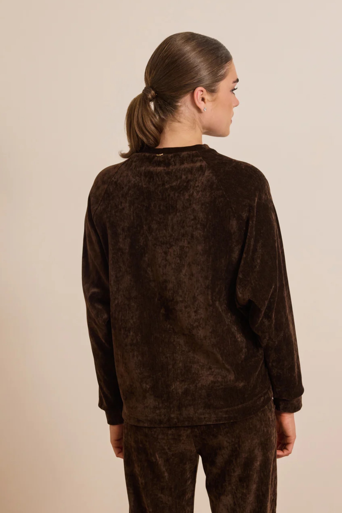 Μπλούζα από ελαστικό βελούδινο ύφασμα. Η μπλούζα είναι άνετη και μακρυμάνικη, έχει κλειστή λαιμόκόψη και απαλή υφή. Το προϊόν είναι ελληνικής εταιρείας.