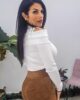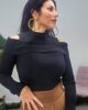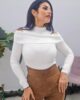 Top από ελαστικό πλεκτό ριπ ύφασμα. Το μπλουζάκι είναι σε άνετη εφαρμογή, ζιβάγκο με σχέδιο που αφήνει έξω τους ώμους.