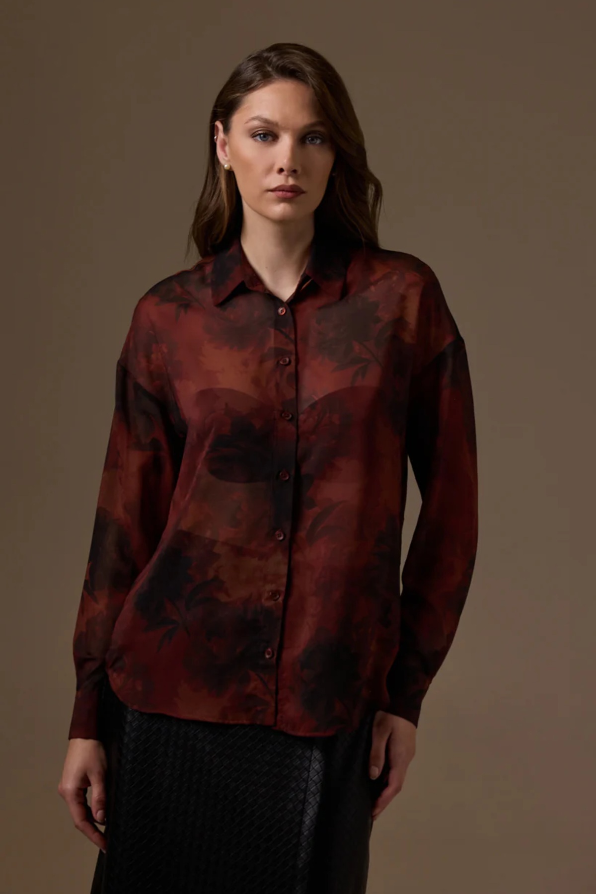 Πουκαμίσα από σταθερή ημιδιάφανη εμπριμέ μουσελίνα. Το πουκάμισο είναι σε άνετη ίσια εφαρμογή, κουμπώνει μπροστά με κουμπιά και κουμπιά στην μανσέτα. Το προιόν είναι ελληνικής εταιρείας.