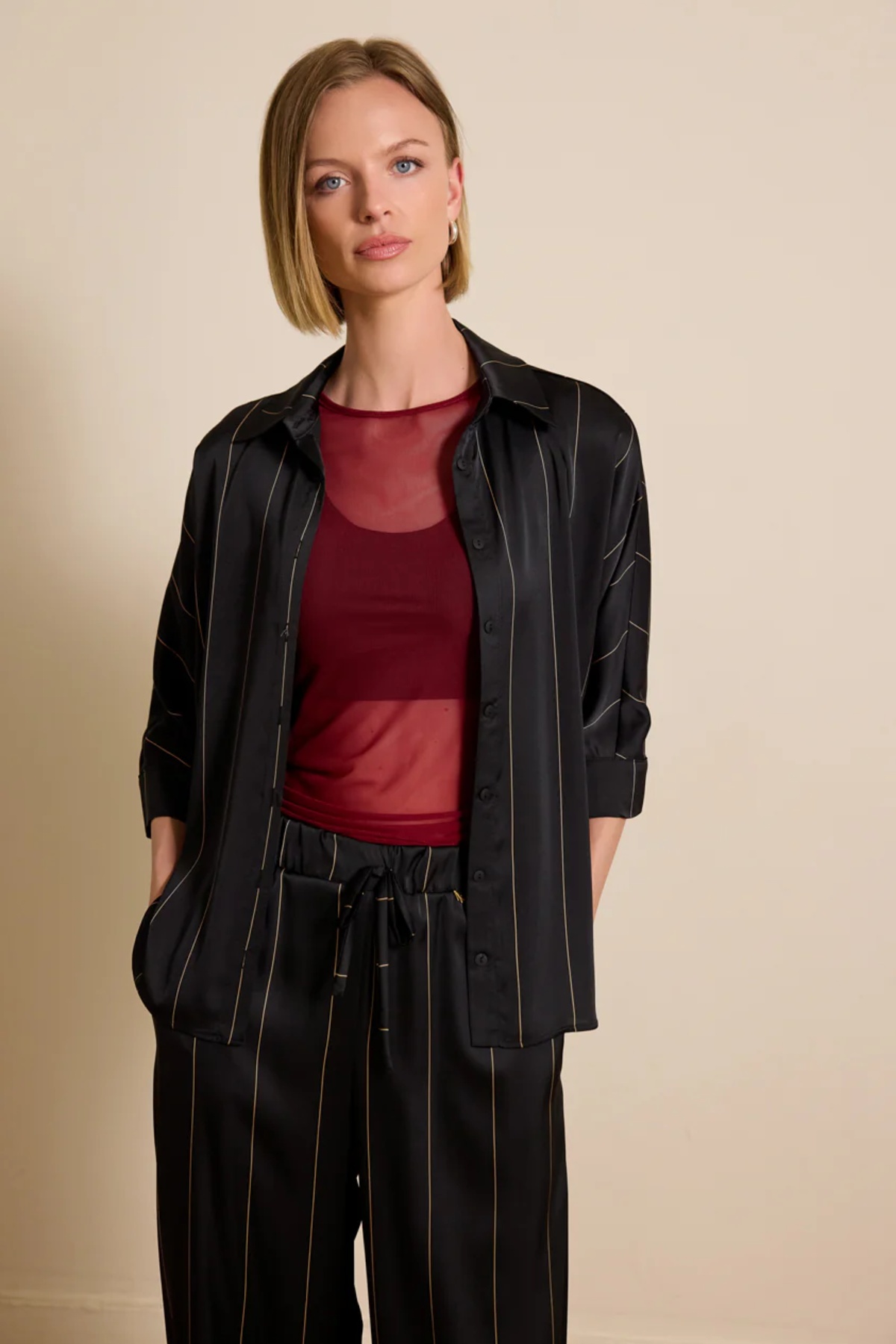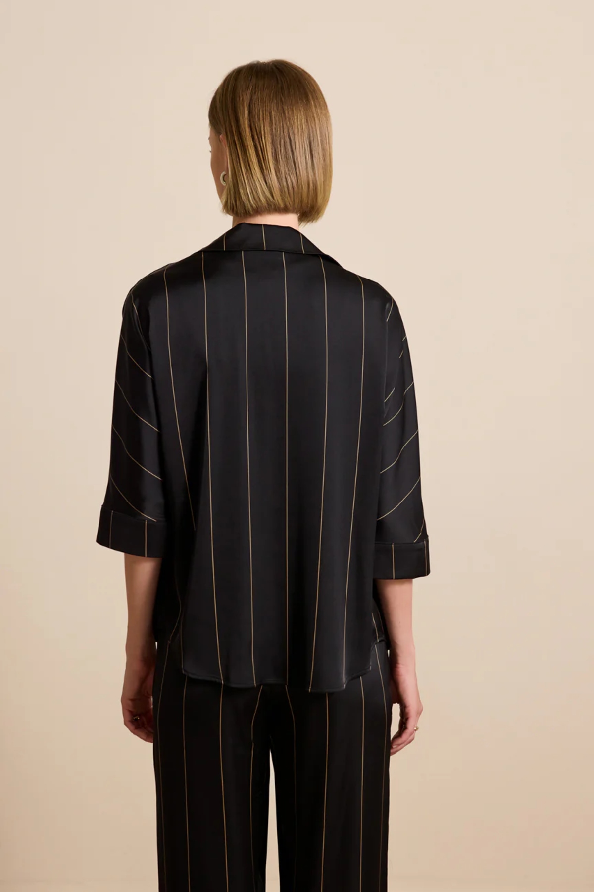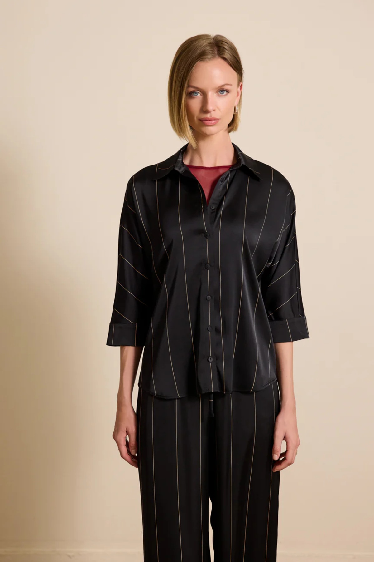 Πουκάμισο από σταθερό σατέν ριγέ ύφασμα. Το πουκάμισο έχει μανίκι 3/4 , άνετη εφαρμογή, γιακά και κουμπώνει με κουμπιά μπροστά. Το προϊόν είναι ελληνικής εταιρείας.