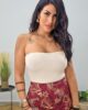 Στράπλες μπλουζάκι από ελαστική πλεκτή βισκόζη. Το τοπ είναι σε άνετη εφαρμογή με ριπ διάταξη και μαλακό ύφασμα.