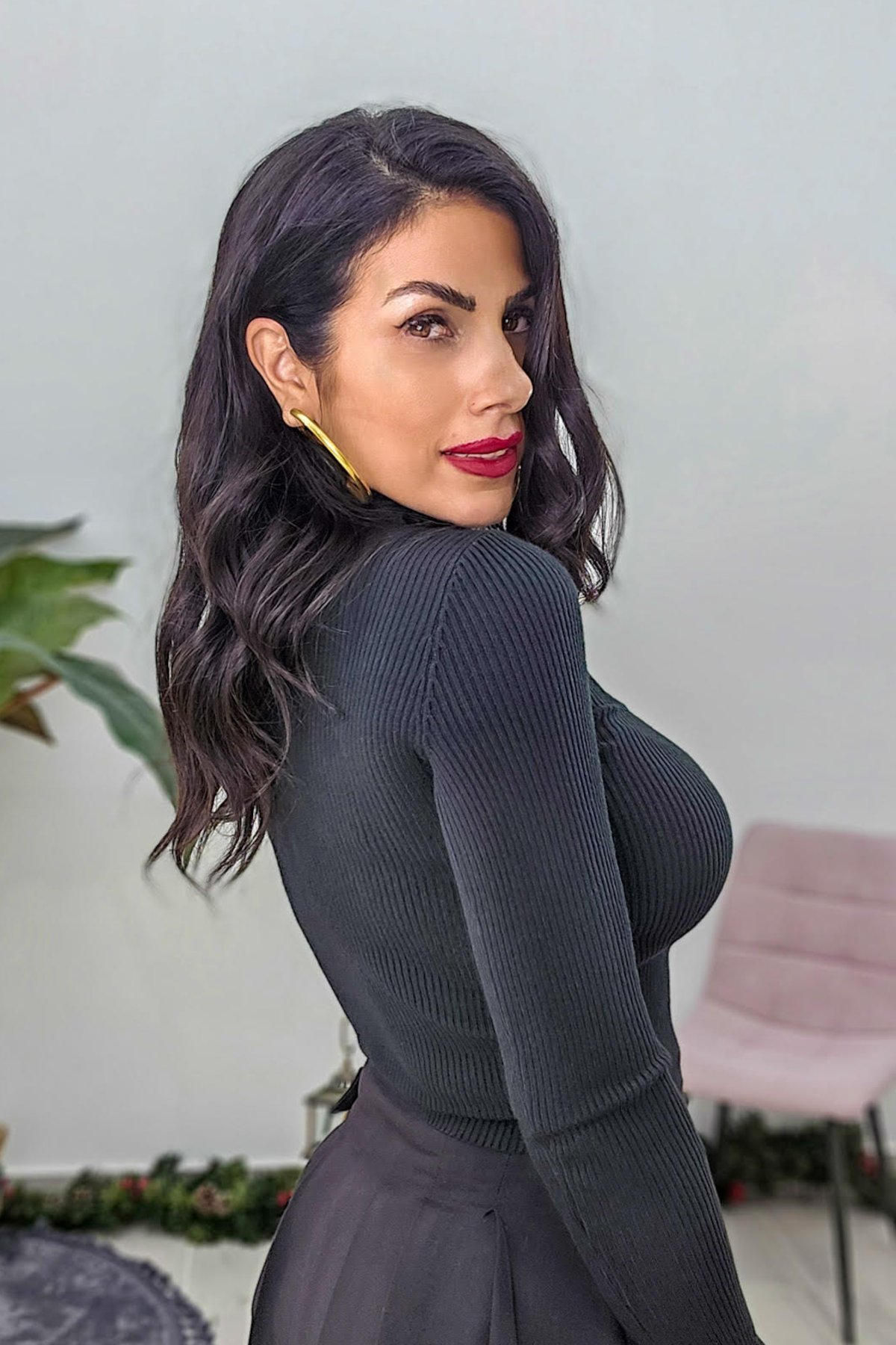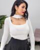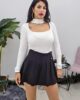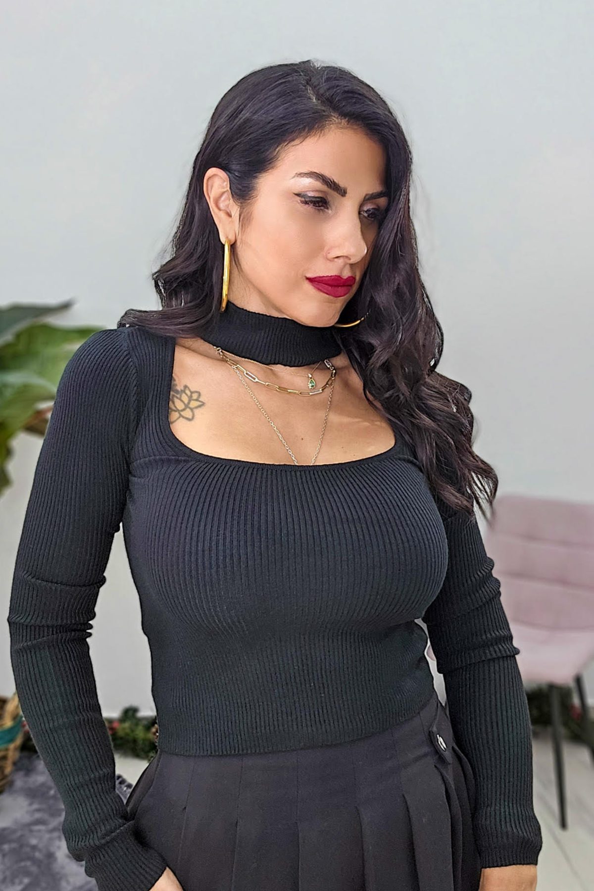Top από ελαστικό πλεκτό ύφασμα. Το μπλουζάκι έχει άνετη εφαρμογή στρογγυλό ντεκολτέ και σχέδιο με τσόκερ στο λαιμό.