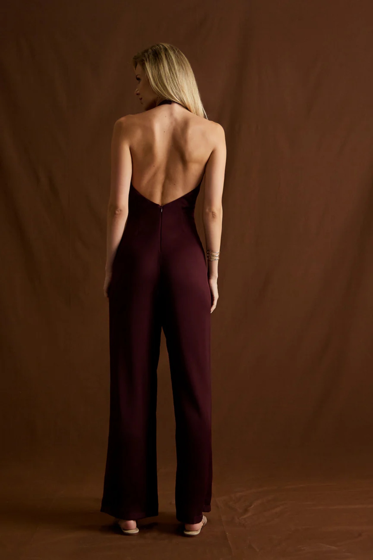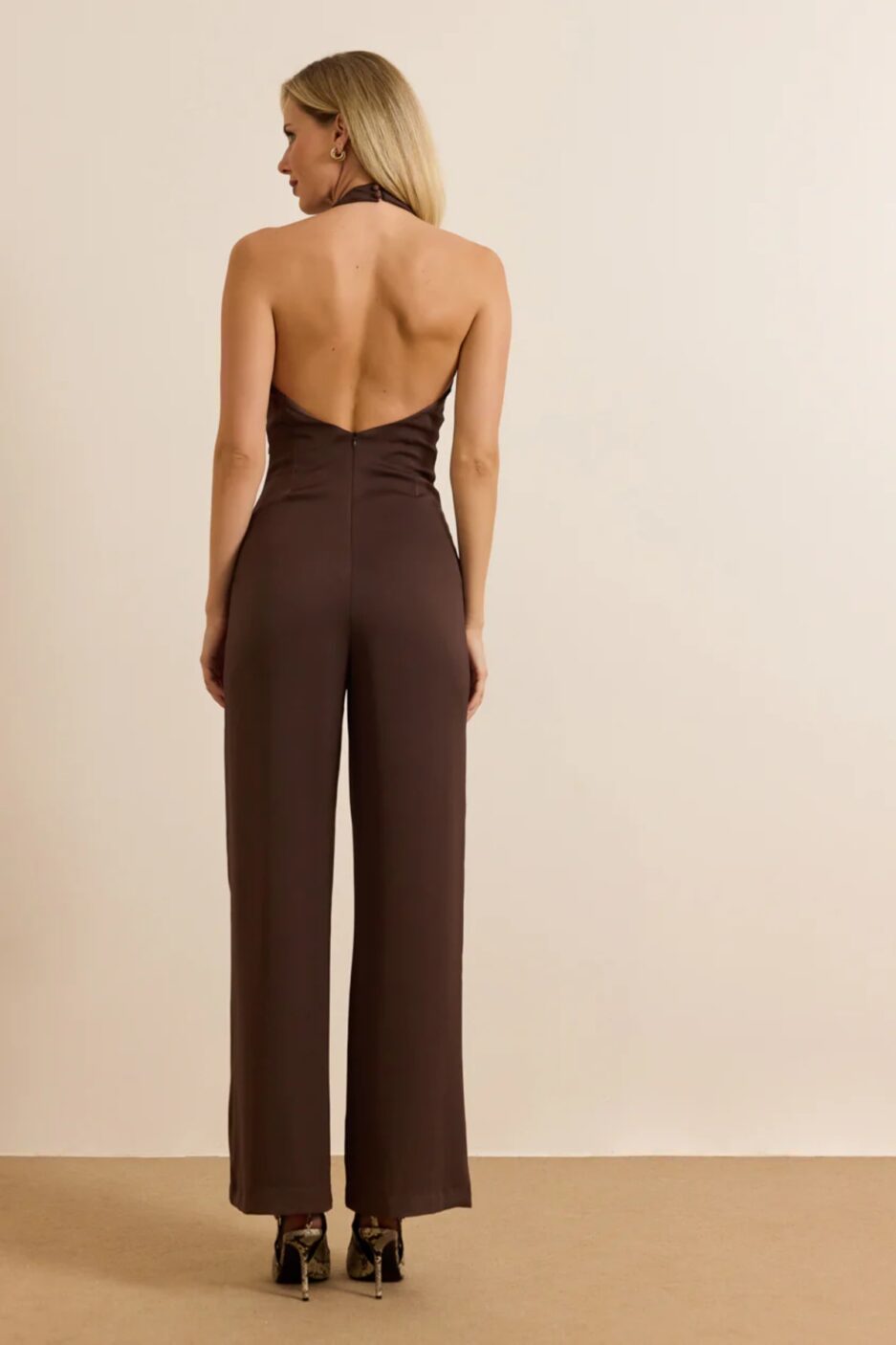 Εξώπλατη ολόσωμη φόρμα από σταθερό ύφασμα με μαλακή υφή. Η φόρμα είναι σε άνετη εφαρμογή , κουμπώνει με κουμπί πίσω από τον λαιμό και φερμουάρ στην πλάτη, πέφτει ανάλαφρη στα πόδια και έχει παρτούς ώμους. Το προϊόν είναι ελληνικής εταιρείας..