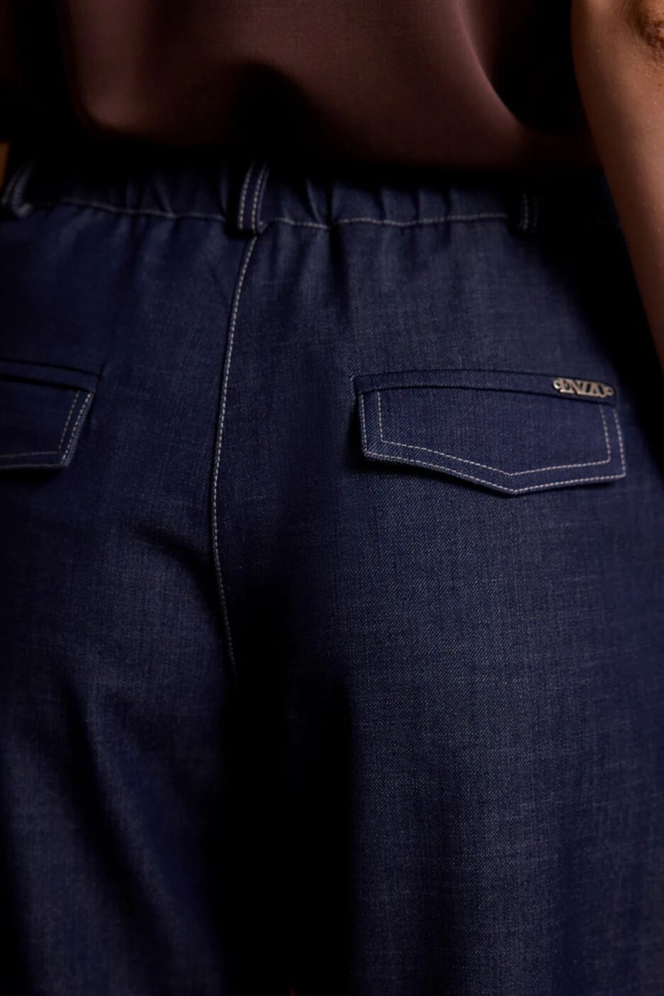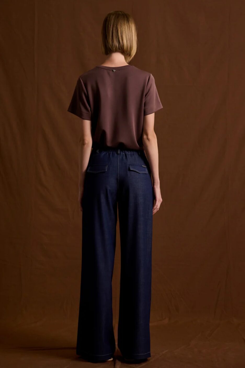 Ψηλόμεσο παντελόνι από σταθερό tencel ύφασμα με μικρή ελαστικότητα. Το παντελόνι είναι σε άνετη εφαρμογή με λάστιχο στην μέση, κουμπώνει με κουμπί και φερμουάρ, έχει κρυφές τσέπες στο πλάι και διακοσμητικές τσέπες στους γλουτούς. Το προϊόν είναι ελληνικής εταιρείας.