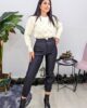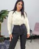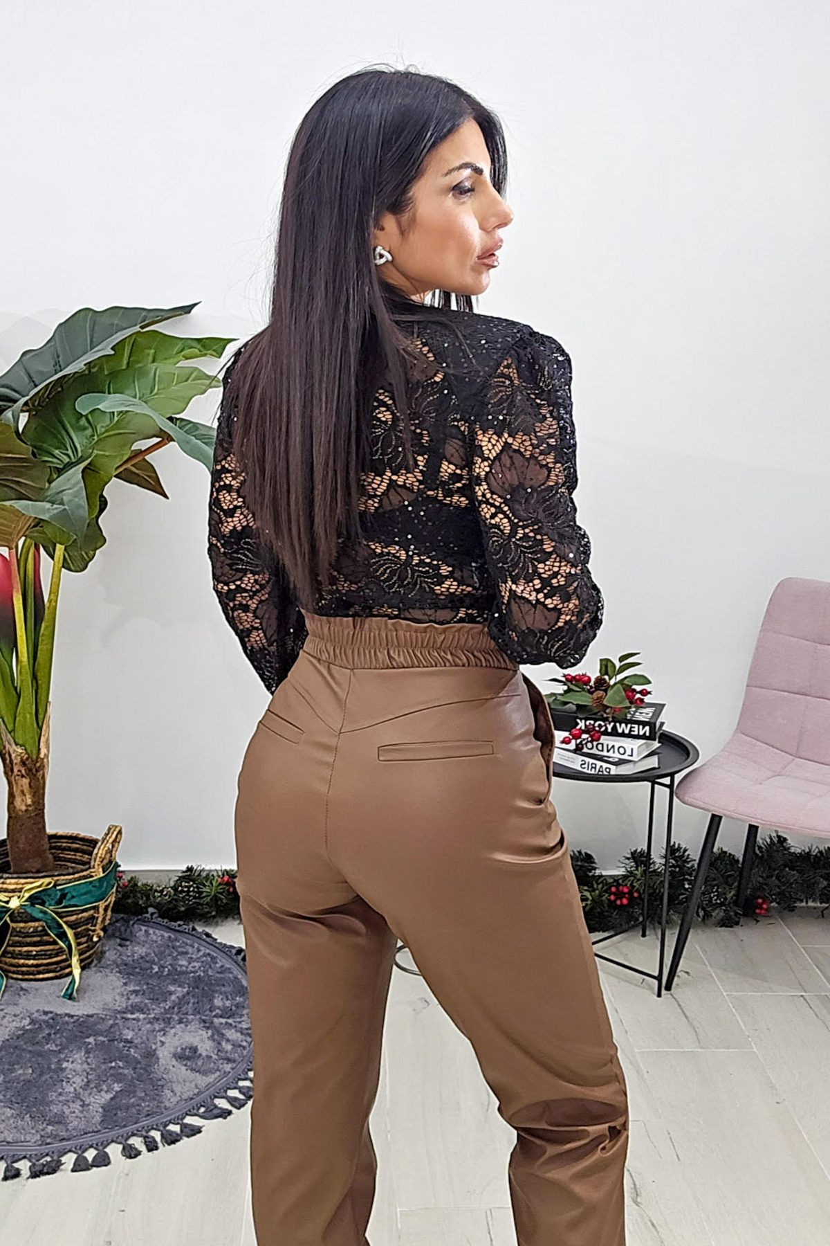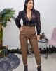 Ψηλόμεσο παντελόνι από ελαστική δερματίνη. Το παντελόνι είναι σε άνετη εφαρμογή , κουμπώνει με κουμπιά τρουκς και φερμουάρ έχει λάστιχο στην μέση και τσέπες στο πλάι. Το προϊόν είναι ελληνικής εταιρείας.