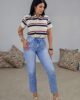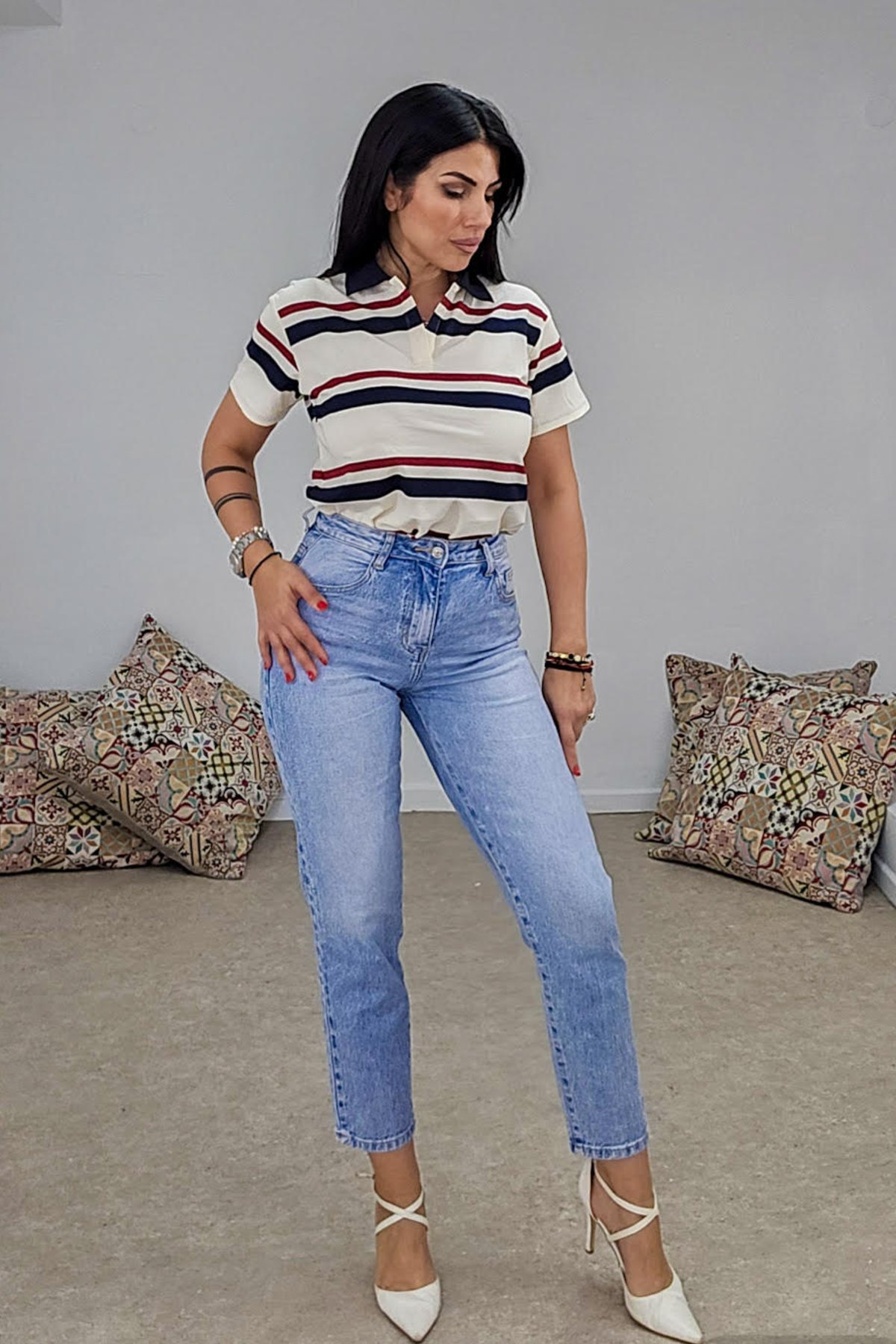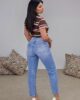 Ψηλόμεσο jean από ελαφρός ελαστικό βαμβακερό ύφασμα. Το παντελόνι έχει άνετη γραμμή και τέλεια εφαρμογή στους γλουτούς. Κουμπώνει με κουμπί και φερμουάρ και φτάνει μέχρι τον αστράγαλο.