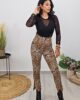 Ψηλόμεσο παντελόνι από σταθερό εμπριμέ ύφασμα με μικρή ελαστικότητα. Το παντελόνι είναι σε άνετη εφαρμογή πάνω στο σώμα, κουμπώνει με φερμουάρ στο πλάι και στο τελείωμα έχει άνοιγμα στα πατζάκια. Το προϊόν είναι ελληνικής εταιρείας.