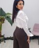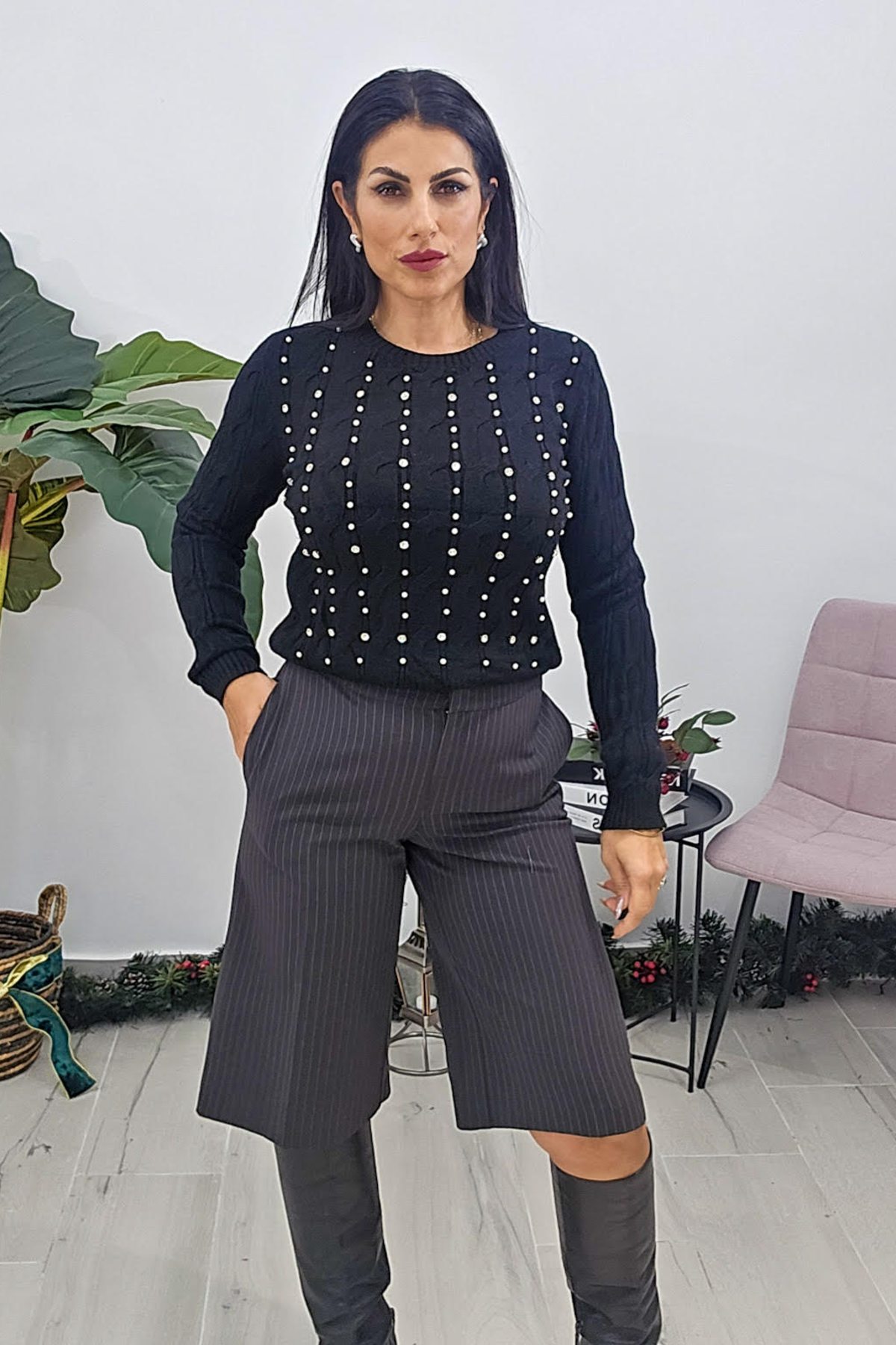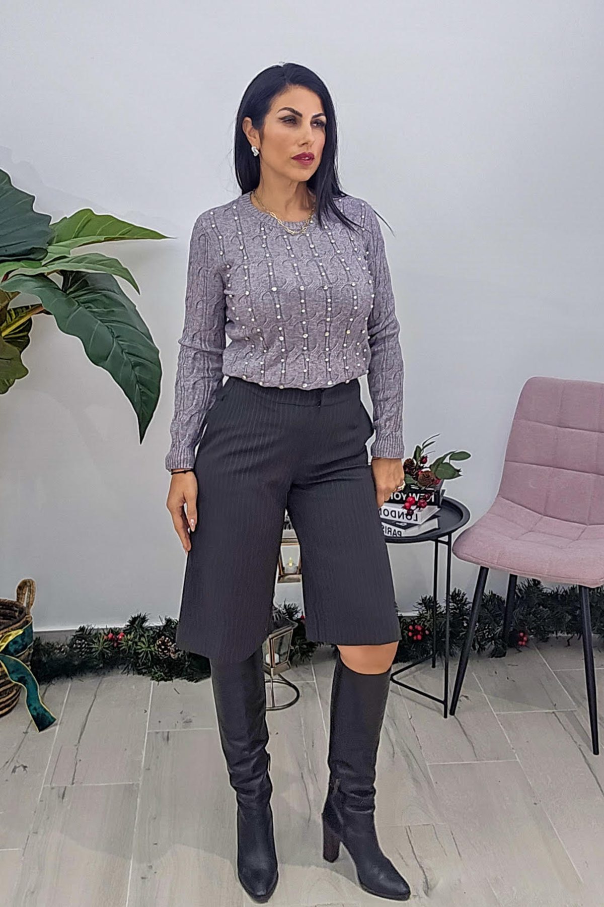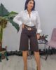 Βερμούδα από σταθερό ριγέ ύφασμα. Η βερμούδα είναι σε άνετη εφαρμογή, κουμπώνει με κόπιτσα και φερμουάρ στην μέση πίσω έχει λάστιχο και τσέπες στο πλάι. Το προϊόν είναι ελληνικής εταιρείας.