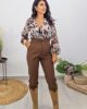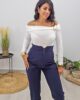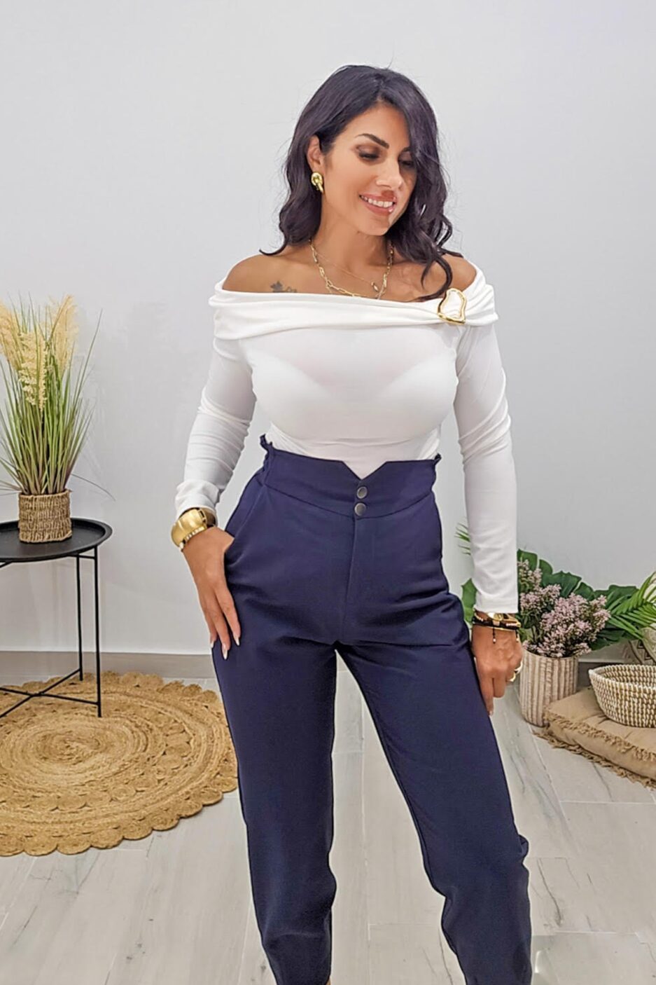 Ψηλόμεσο παντελόνι από σταθερό ύφασμα. Το παντελόνι είναι σε άνετη εφαρμογή , κουμπώνει με κουμπιά τρουκς και φερμουάρ έχει λάστιχο στην μέση και τσέπες στο πλάι. Το προϊόν είναι ελληνικής εταιρείας.