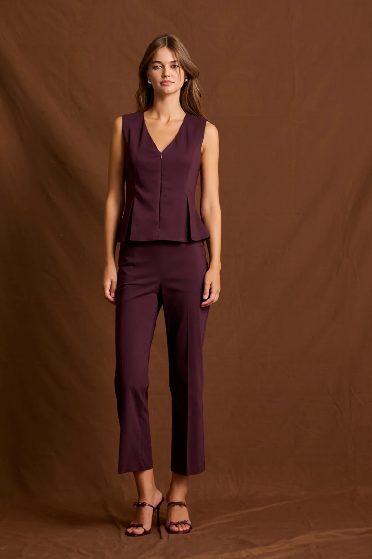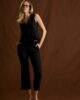 Ψηλόμεσο παντελόνι από σταθερό βαμβακερό ύφασμα με μικρή ελαστικότητα. Το παντελόνι είναι σε άνετη εφαρμογή, κουμπώνει με φερμουάρ στο πλάι, είναι σε εβαζέ γραμμή στο τελείωμα και έχει τσέπες στο πλάι. Το προϊόν είναι ελληνικής εταιρείας.