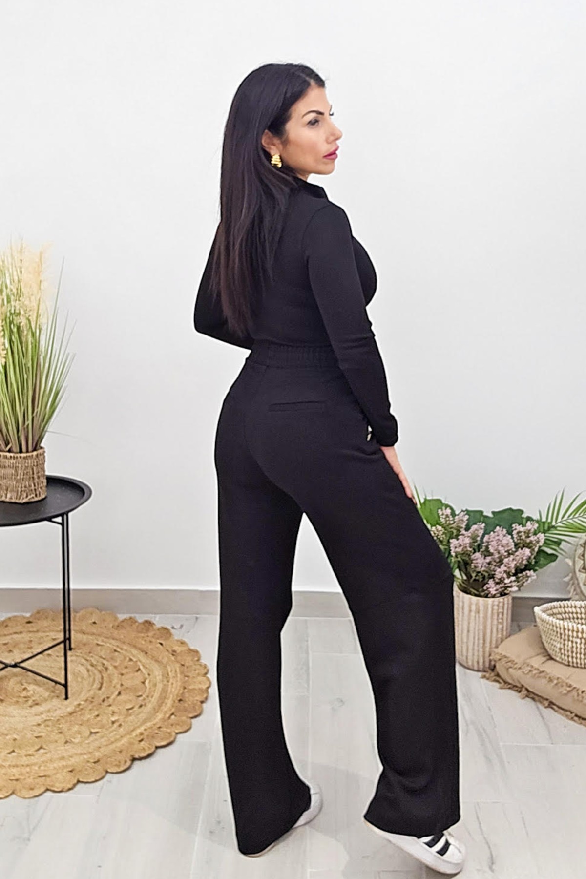 Ψηλόμεσο παντελόνι φούτερ από ελαστικό rayon ύφασμα. Το παντελόνι είναι σε άνετη εφαρμογή με λάστιχο στην μέση , τσέπες στο πλάι , φιλέτο τσέπες στους γλουτούς και στο γόνατο κάνει πιέτα. Το προϊόν είναι ελληνικής εταιρείας.