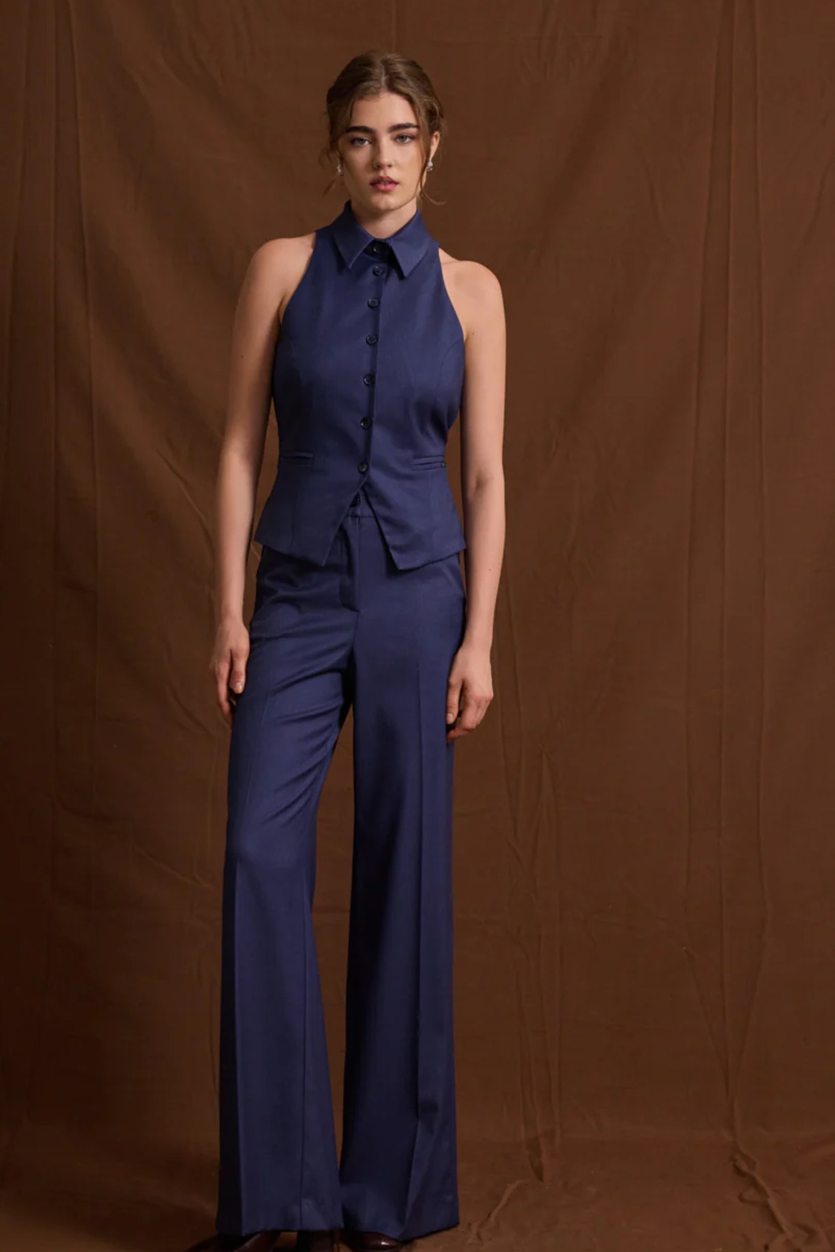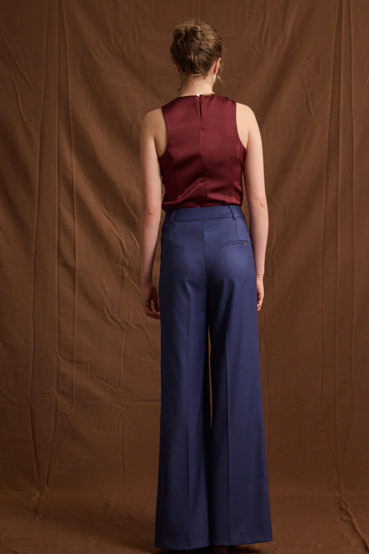Ψηλόμεση παντελόνα από σταθερό ύφασμα. Το παντελόνι είναι σε άνετη εφαρμογή με τσάκιση στο πατζάκι. κουμπώνει με κουμπί και φερμουάρ, έχει τσέπες στο πλάι και διακοσμητικές τσέπες στους γλουτούς. Το προϊόν είναι ελληνικής εταιρείας.