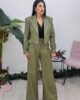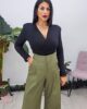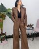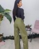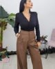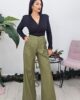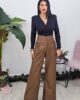 Ψηλόμεσο παντελόνι από ελαστική δερματίνη. Το παντελόνι κουμπώνει με φερμουάρ και κόπιτσα, έχει πιέτες ,άνετη εφαρμογή και φαρδύ πατζάκι. Στο πλάι έχει τσέπες και φιλέτο τσέπες στους γλουτούς. Το προϊόν είναι ελληνικής εταιρείας.
