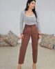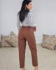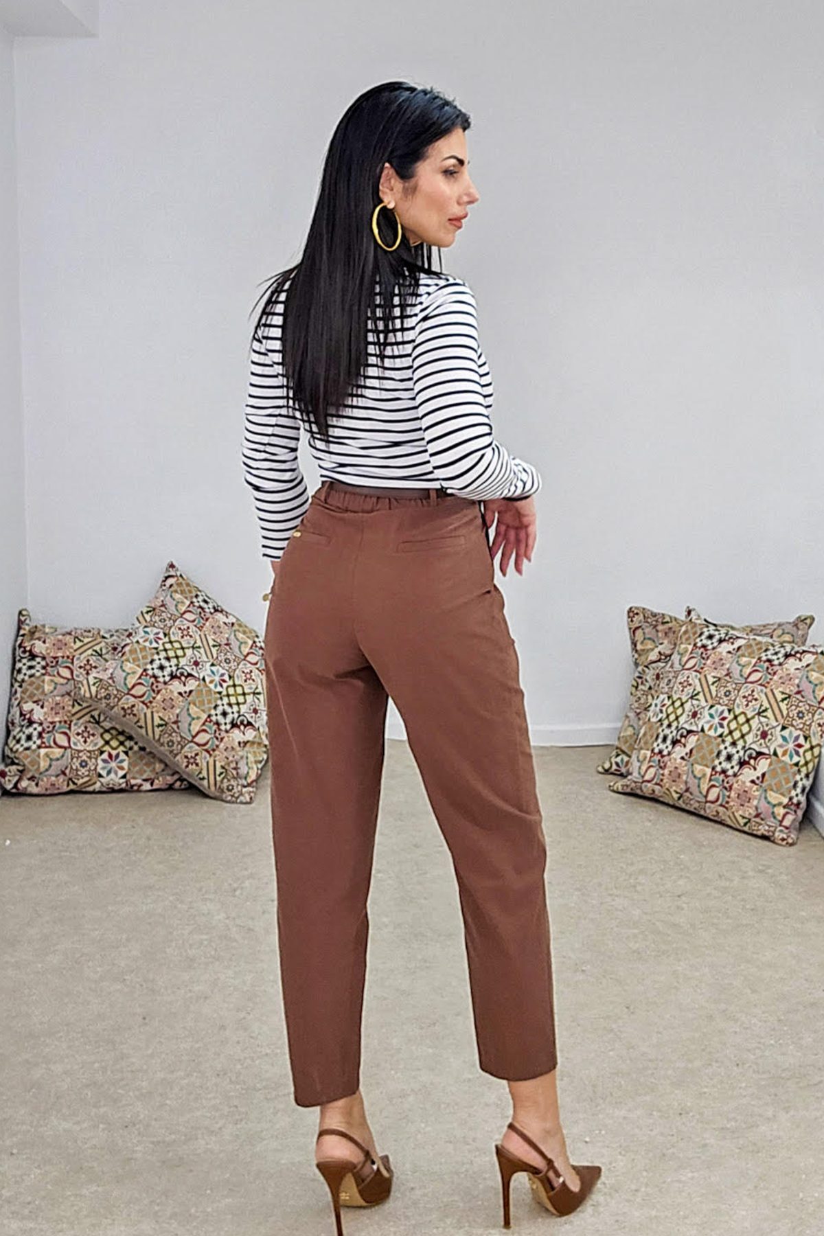 Ψηλόμεσο παντελόνι από σταθερό βαμβακερό ύφασμα. Το παντελόνι είναι στυλ mom σε άνετη εφαρμογή με πιέτες μπροστά και ανάλαφρο πατζάκι, κουμπώνει με κουμπί και φερμουάρ έχει ζώνη με λεπτή αγκράφα, λάστιχο πίσω στην μέση ,τσέπες στο πλάι και φιλέτο τσέπες στους γλουτούς. Το προιόν είναι ελληνικής εταιρείας.