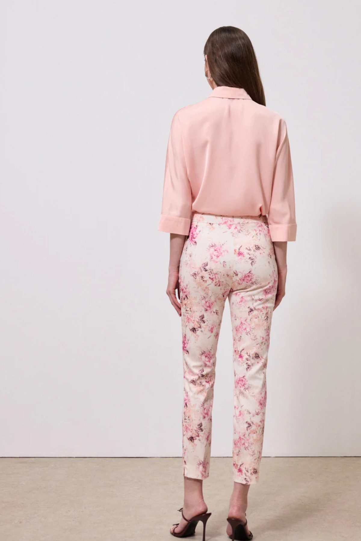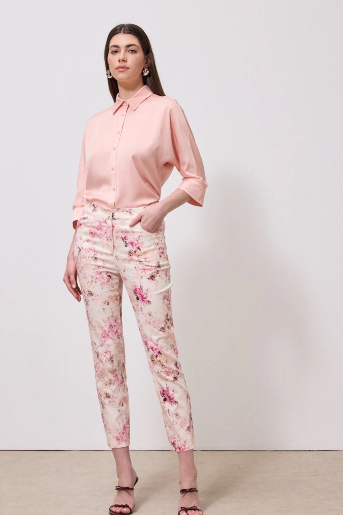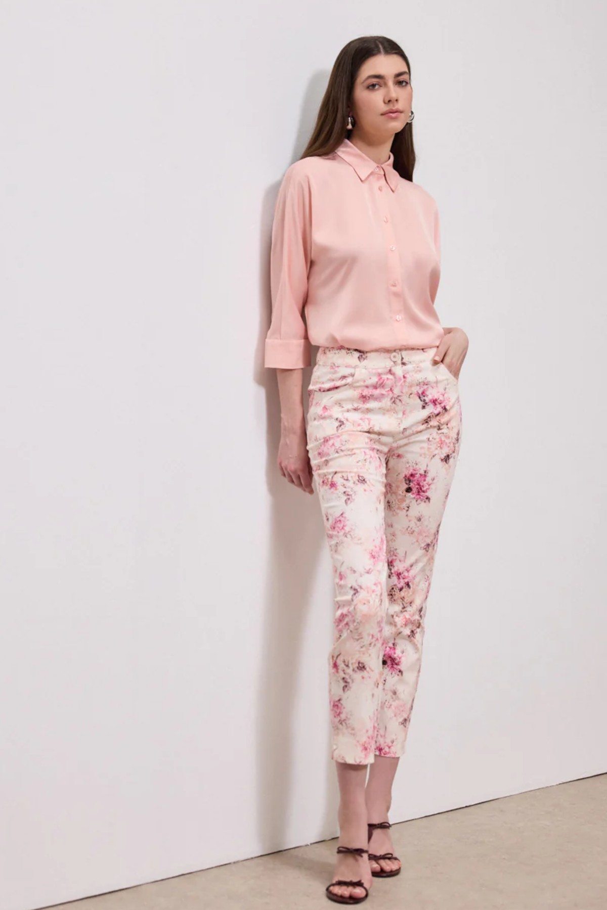 Ψηλόμεσο φλοράλ παντελόνι από σταθερό βαμβακερό τύπου τζιν ύφασμα με μικρή ελαστικότητα. Το παντελόνι κουμπώνει με κουμπί και φερμουάρ είναι σε άνετη εφαρμογή και τσέπες στο πλάι. Το προιόν είναι ελληνικής εταιρείας.