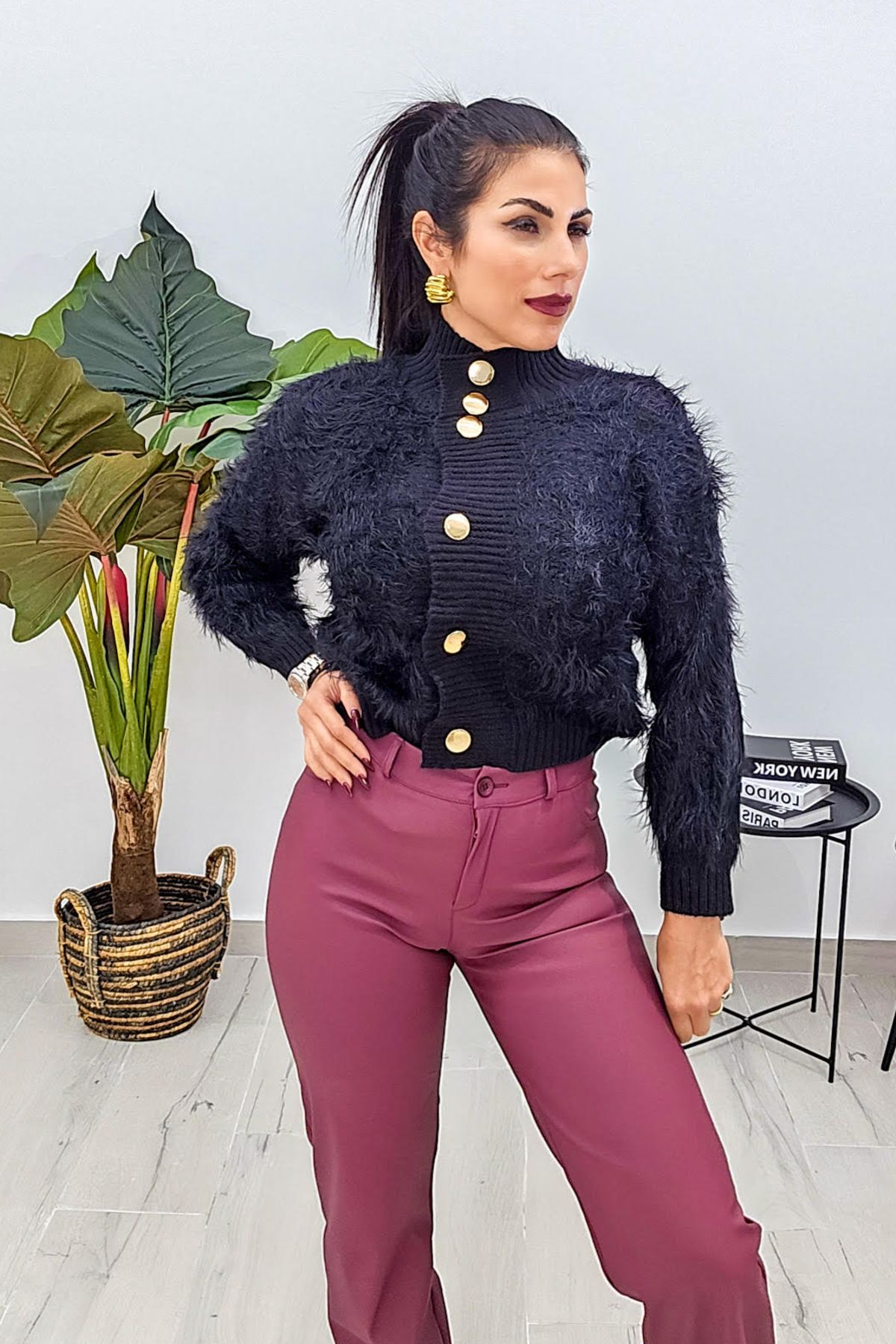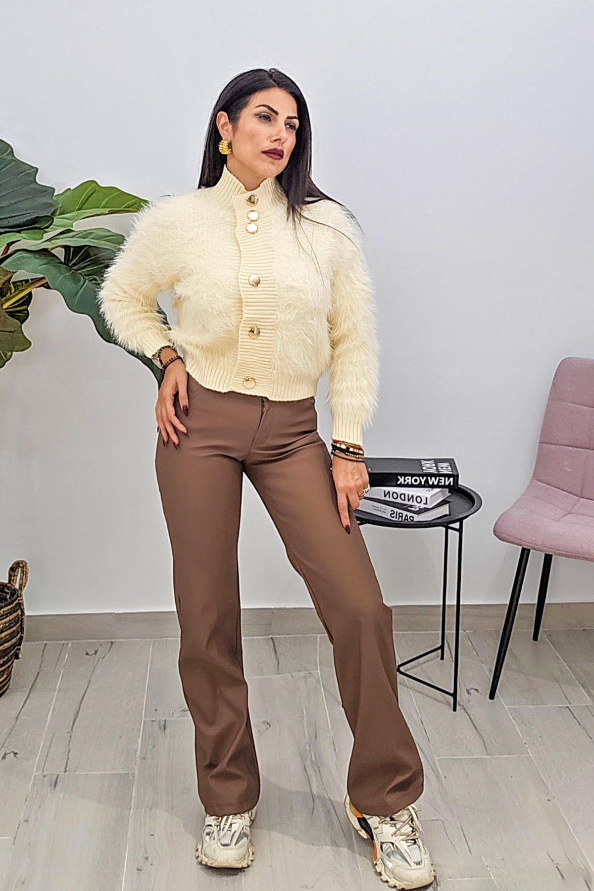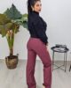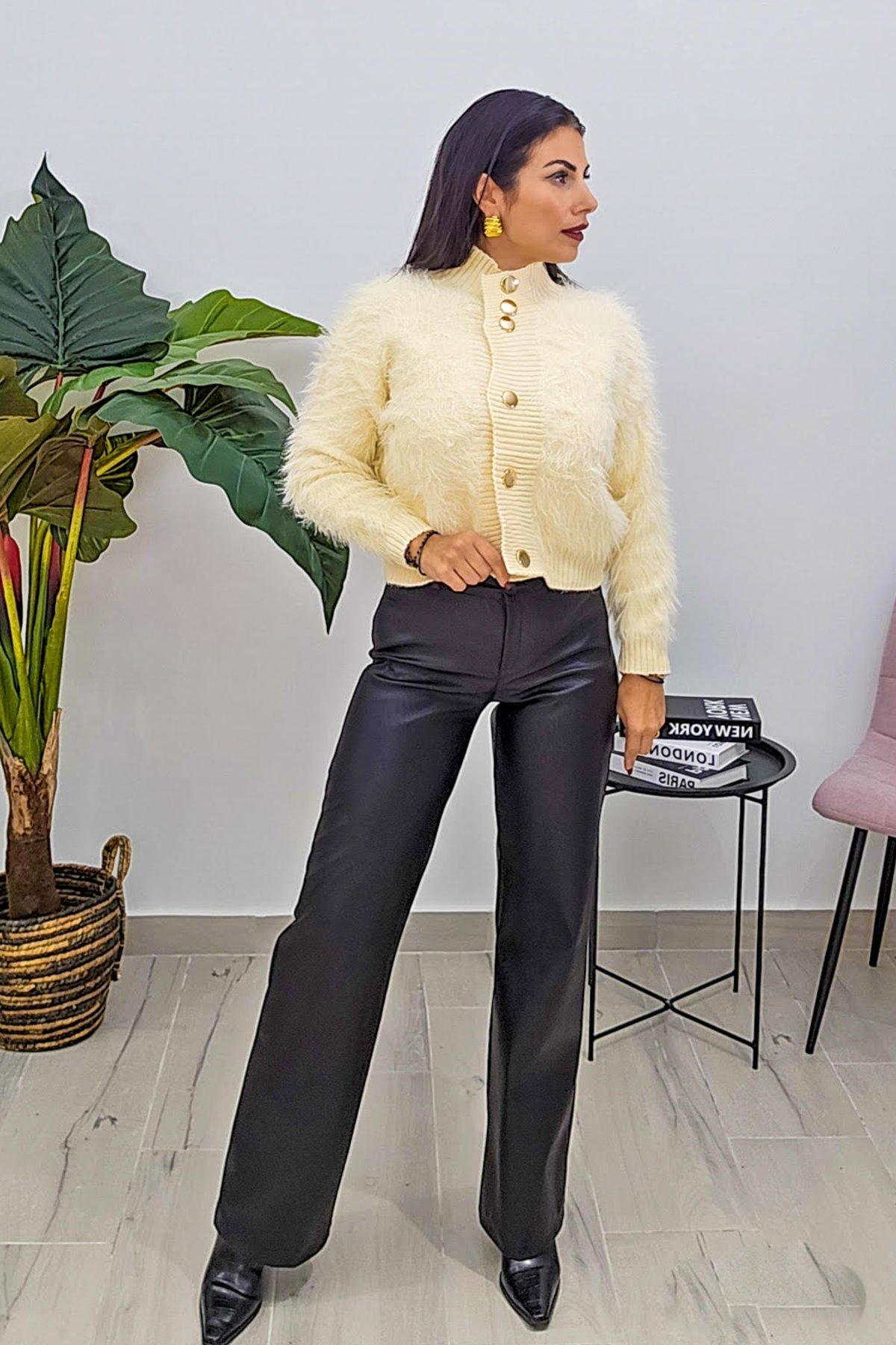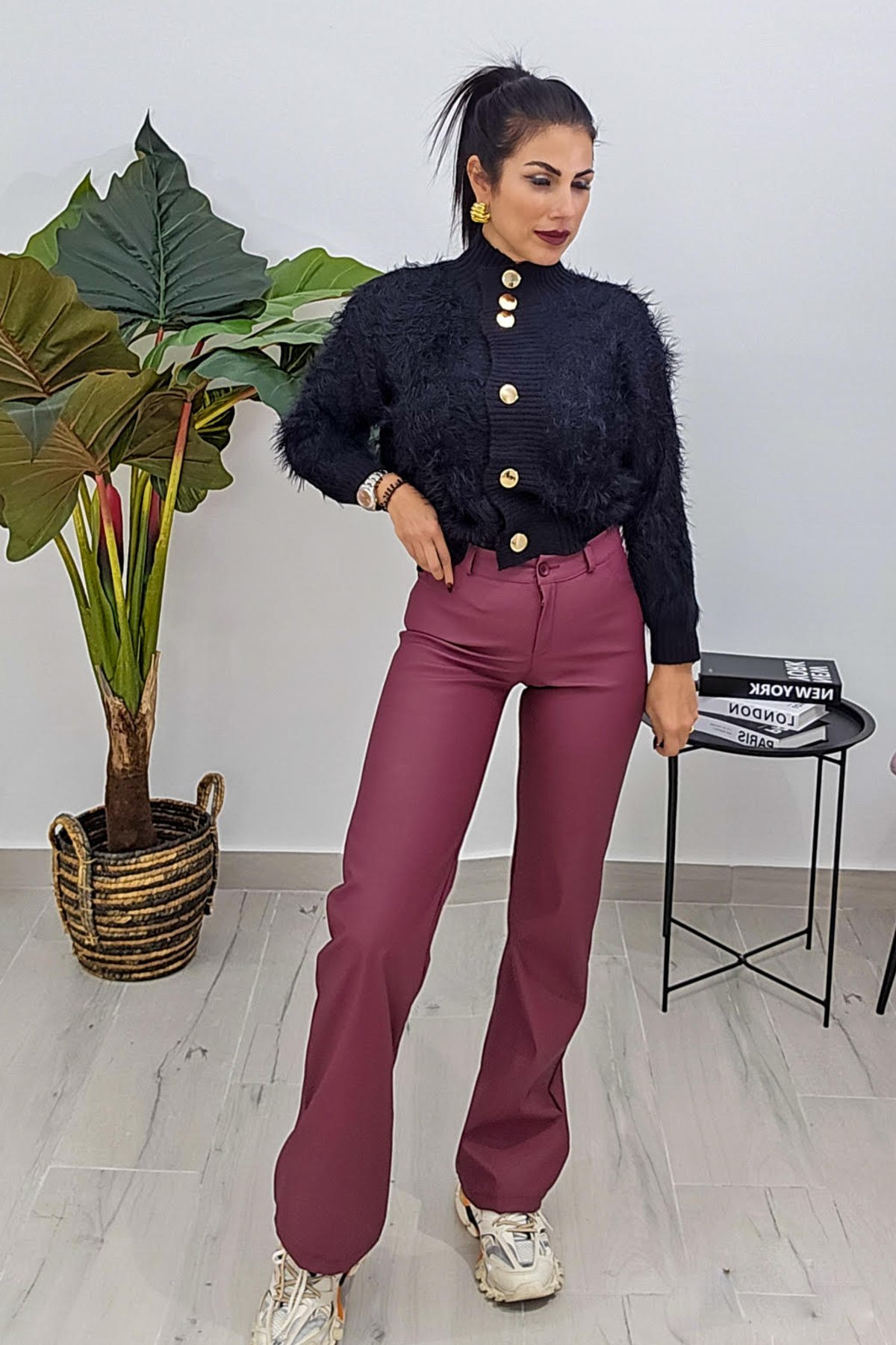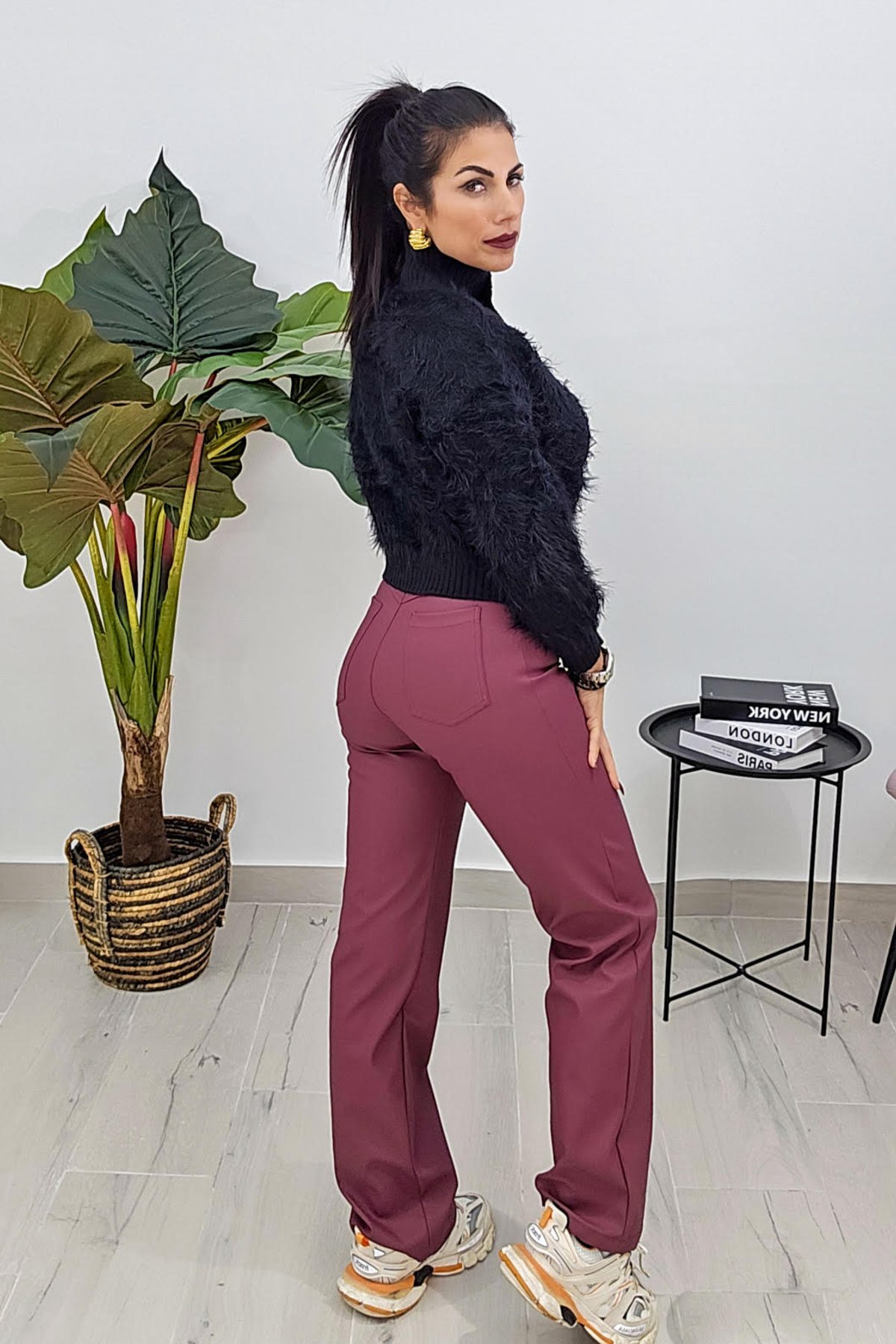 Παντελόνι ψηλόμεσο από ελαστική δερματίνη. Το παντελόνι είναι σε άνετη ίσια εφαρμογή ,κουμπώνει με κουμπί και φερμουάρ και έχει τσέπες στους γλουτούς. Το προϊόν είναι ελληνικής εταιρείας.