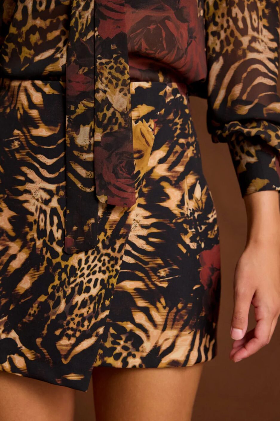 Ψηλόμεσο skort από σταθερό εμπριμέ ύφασμα. Το skort είναι σε άνετη εφαρμογή και κουμπώνει με φερμουάρ στο πλάι. Το προϊόν είναι ελληνικής εταιρείας.