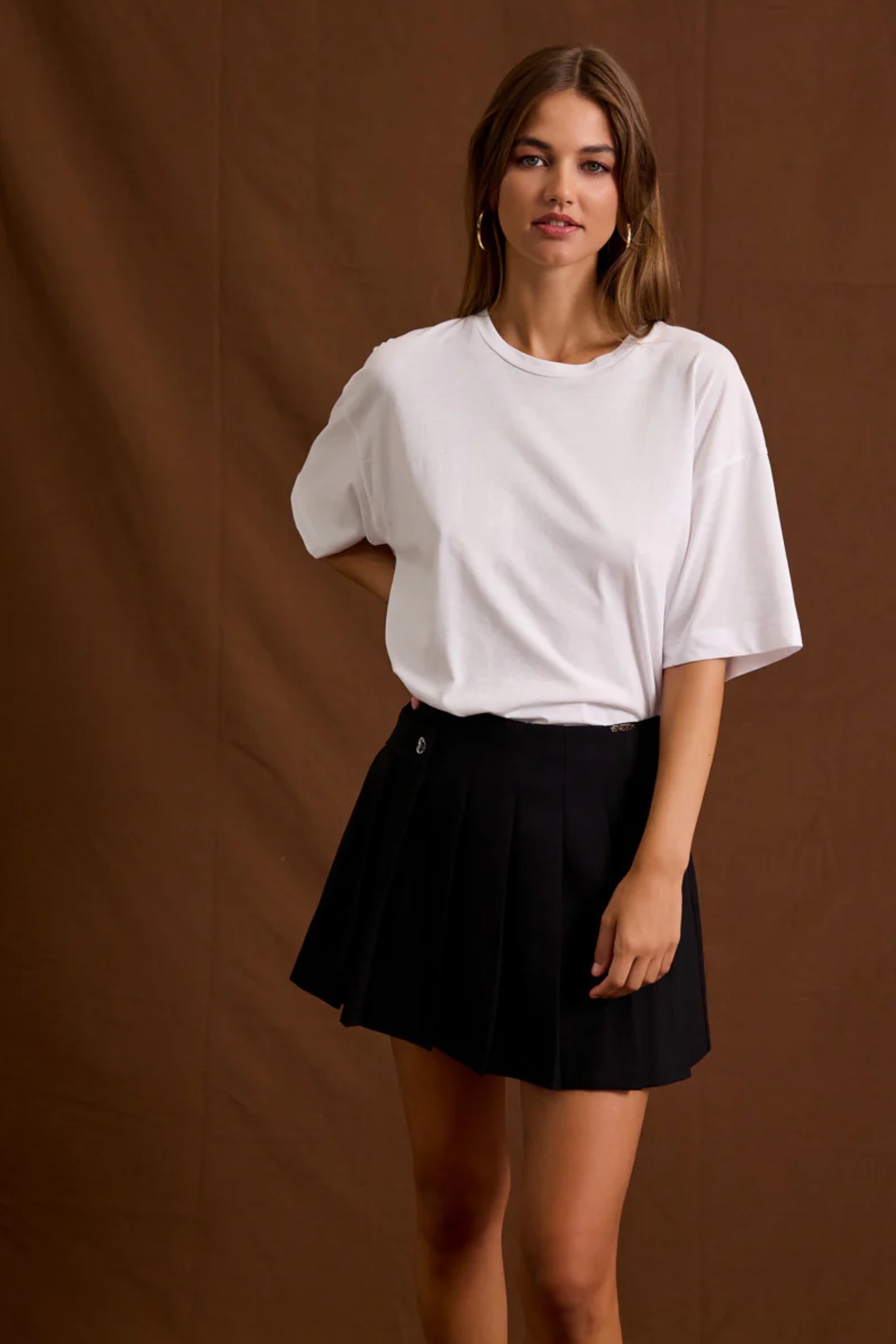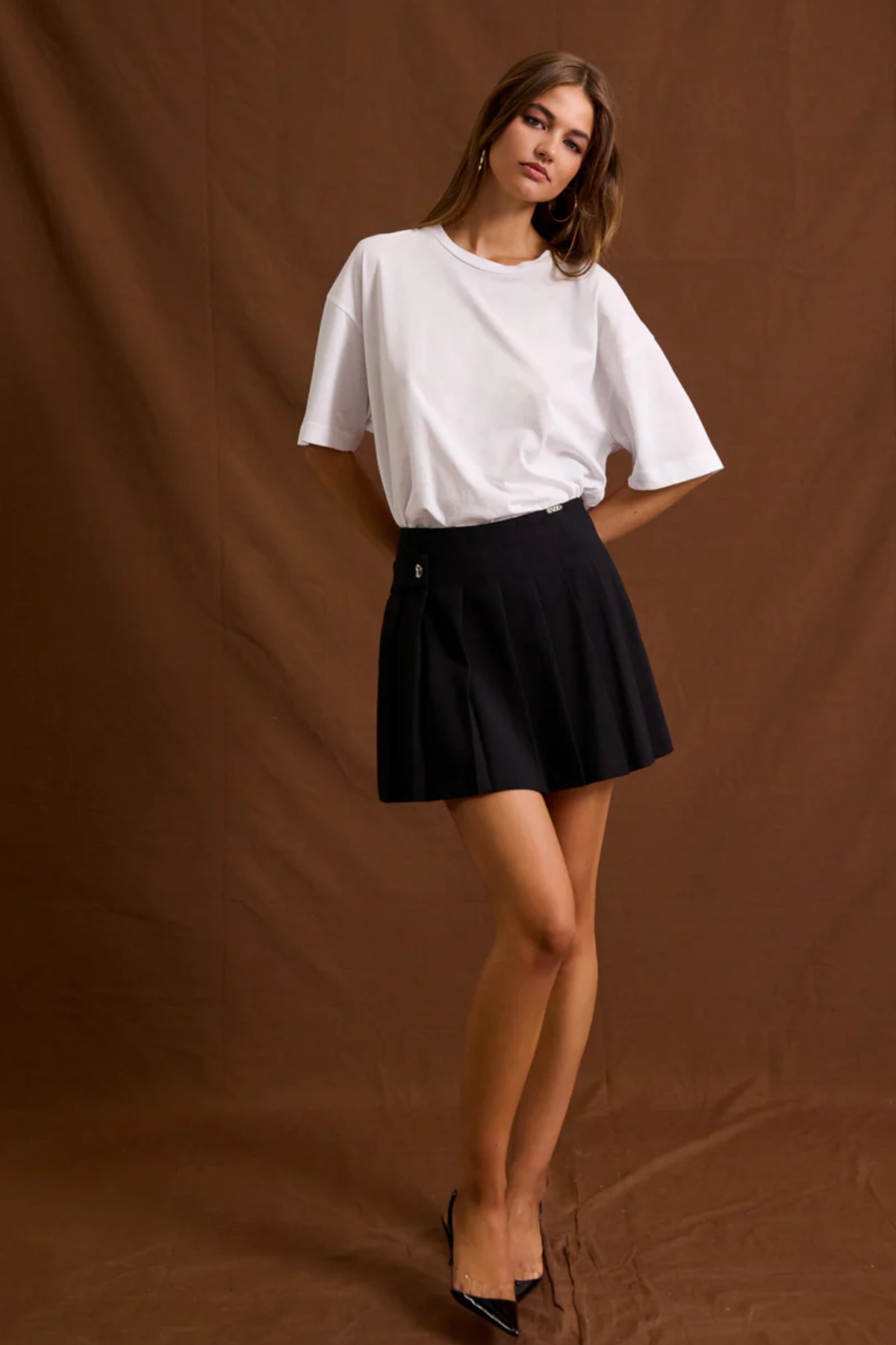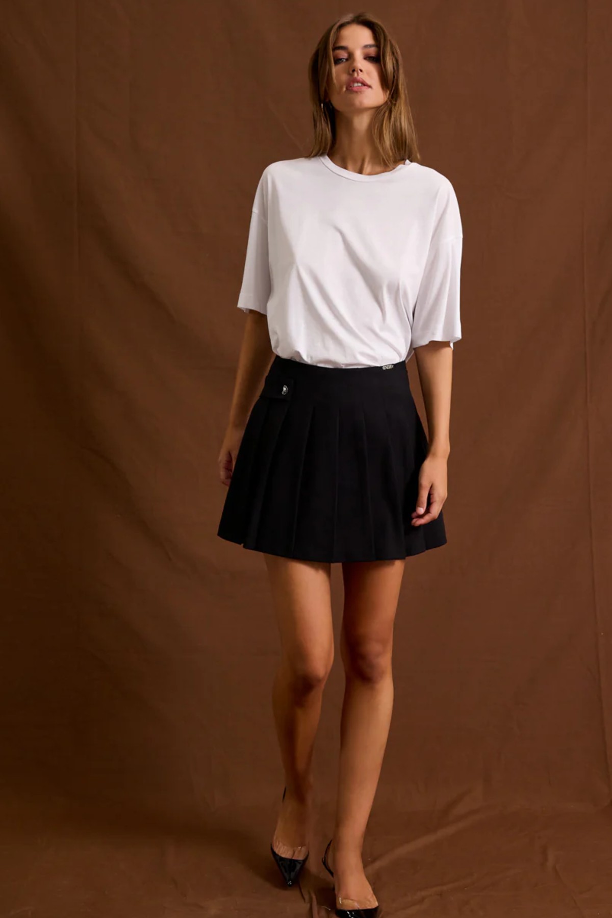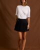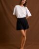 Skort από σταθερό ύφασμα. Το σορτς είναι σε άνετη εφαρμογή , έχει φερμουάρ το πλάι, πιέτες και διακοσμητικό κόσμημα με ζωνάκι στο πλάι. Το προϊόν είναι ελληνικής εταιρείας.