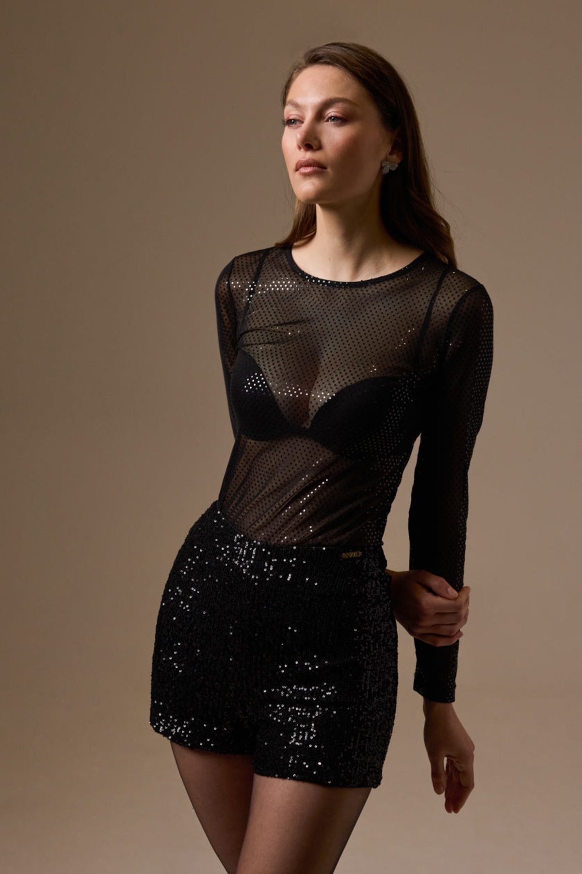Sorts από ελαστική παγιέτα. Το σορτς είναι σε άνετη εφαρμογή, εσωτερικά έχει φόδρα και λάστιχο στην μέση. Το προιόν είναι ελληνικής εταιρείας.