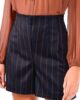 Shorts από σταθερό ριγέ ύφασμα με βισκόζη. Το σορτς κουμπώνει στο πλάι με φερμουάρ, είναι σε άνετη γραμμή και είναι ψηλόμεσο. Το προϊόν είναι ελληνικής εταιρείας.