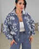 Bomber από σταθερό ριγέ ύφασμα με κέντημα. Το μπουφάν είναι σε άνετη εφαρμογή με φόδρα εσωτερικά και κουμπώνει μπροστά με ασημένιο φερμουάρ. Στο τελείωμα καταλήγει σε λάστιχο και λάστιχο στα μανίκια. Το προιόν είναι ελληνικής εταιρείας.