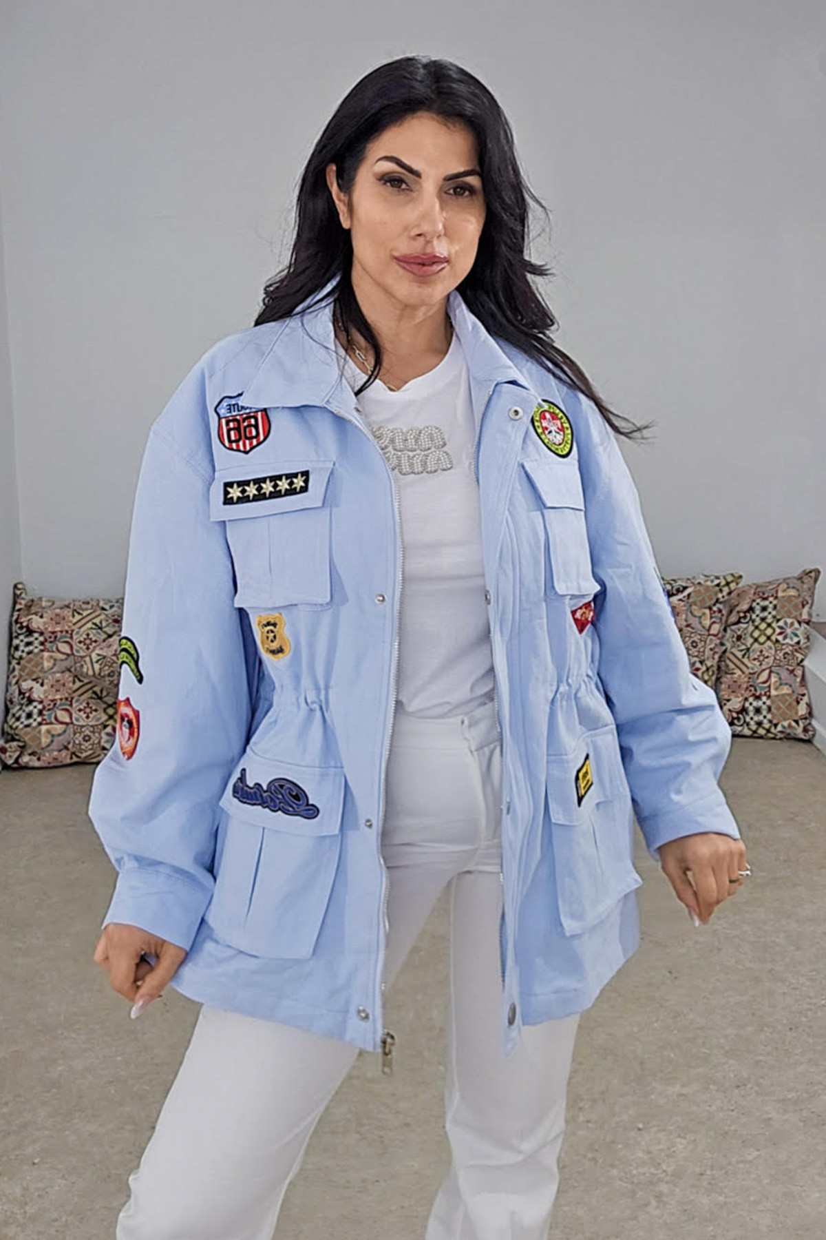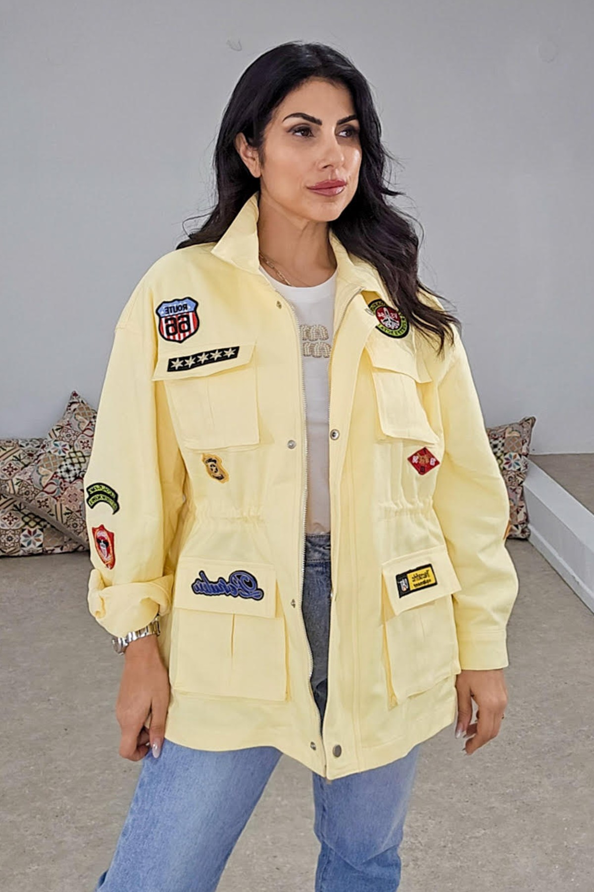 Jacket από βαμβακερό σταθερό ύφασμα. Το μπουφάν είναι σε άνετη εφαρμογή με φόδρα εσωτερικά σιδηρόδρομο που ρυθμίζεται και το κάνει πιο μεσάτο, τσέπες στο πλάι και patches που το κάνουν πιο εντυπωσιακό.