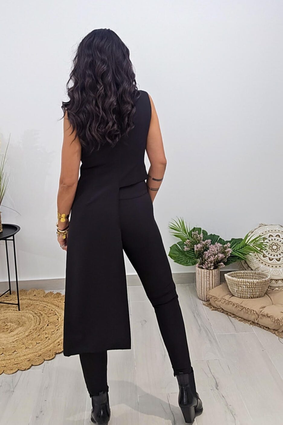 Ασύμμετρο γιλέκο από σταθερό κρεπ ύφασμα. Το γιλέκο είναι σε άνετη εφαρμογή, κουμπώνει με κουμπιά μπροστά, από την μια πλευρά είναι πιο μακρύ και έχει κλειστή λαιμόκοψη. Το προϊόν είναι ελληνικής εταιρείας.