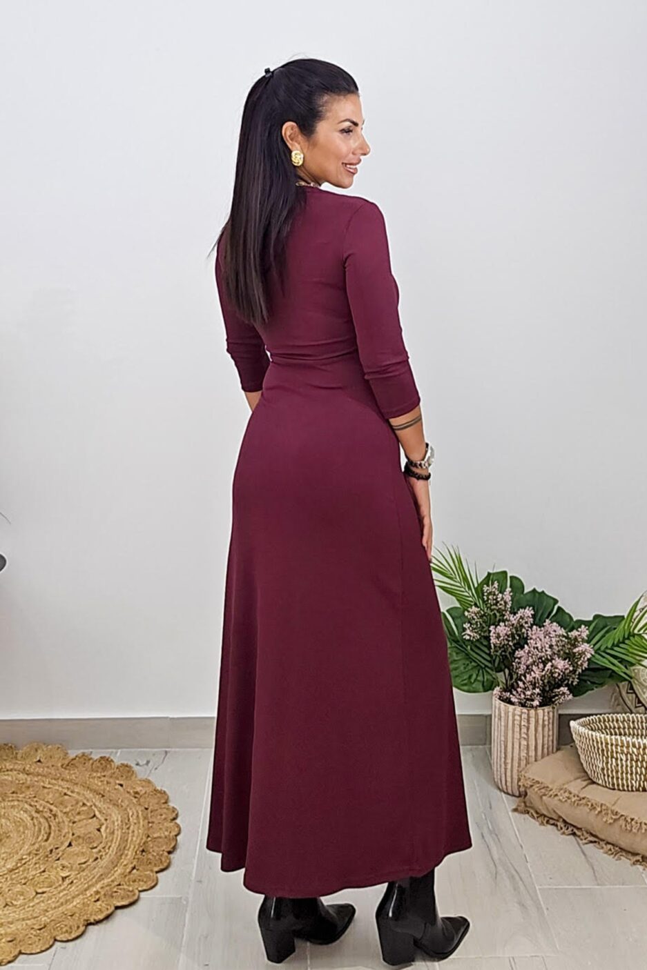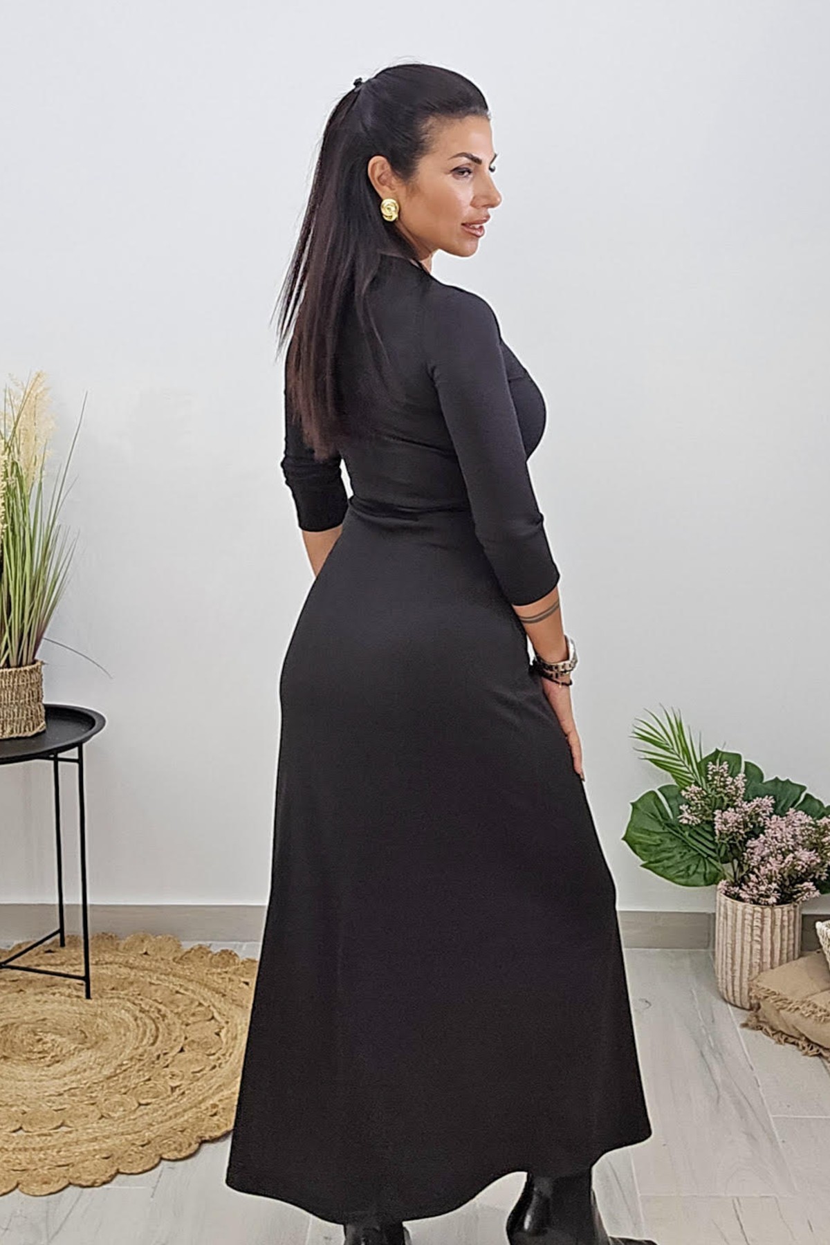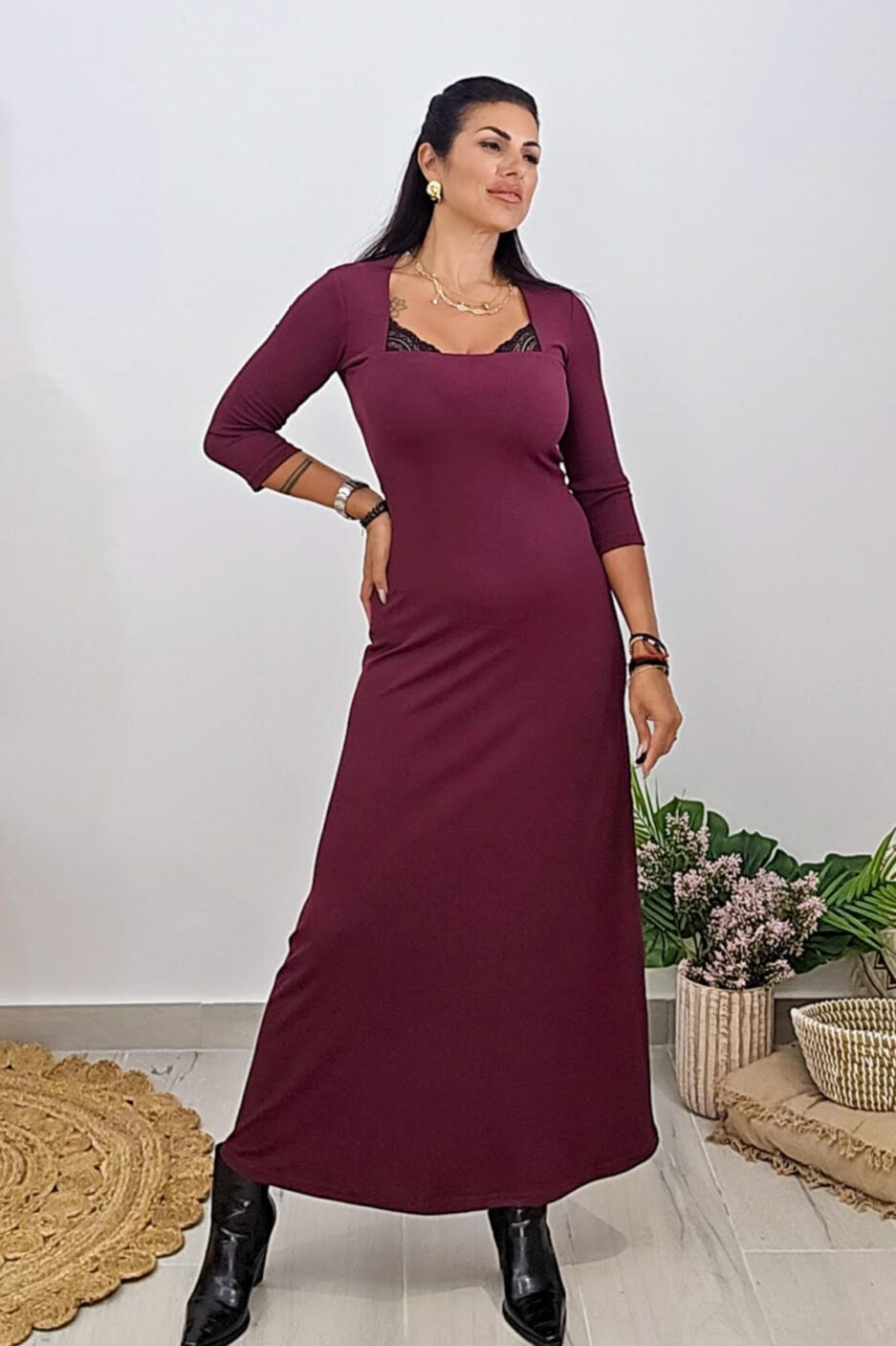 Maxi φόρεμα από ελαστικό ριπ ύφασμα. Το φόρεμα είναι σε άνετη εφαρμογή με λεπτομέρεια δαντέλα στο μπούστο, μανίκι 3/4 και ελαφρά A γραμμή προς τα κάτω. Το προϊόν είναι ελληνικής εταιρείας.