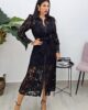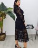 Midi φόρεμα από σταθερή δαντέλα. Το φόρεμα είναι σε άνετη εφαρμογή με λεπτομέρειες σατέν στην πατιλέτα στον γιακά και στην μανσέτα, εσωτερικά έχει κομπινεζόν αποσπώμενο, κουμπώνει με κουμπιά και έχει ζώνη διπλής όψης στην μέση. Το προϊόν είναι ελληνικής εταιρείας.