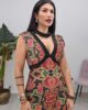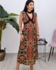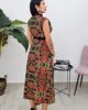 Midi φόρεμα από σταθερό εμπριμέ ύφασμα. Το φόρεμα είναι σε άνετη εφαρμογή, κουμπώνει με φερμουάρ στην πλάτη, είναι αμάνικο με ιδιαίτερο σχέδιο με V ντεκολτέ και τσόκερ βελούδινο στον λαιμό. Το φόρεμα είναι ελληνικής εταιρείας.