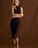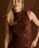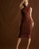 Midi φόρεμα από ελαστικό ημιδιάφανο εμπριμέ τούλι. Το φόρεμα είναι σε άνετη εφαρμογή με κλειστή λαιμόκοψη, κουμπώνει πίσω από το λαιμό με κουμπάκια και εσωτερικά έχει φόδρα. Μπροστά έχει σούρες που κολακεύουν. Το προϊόν είναι ελληνικής εταιρείας.