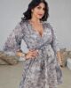 Mini φόρεμα από σταθερό ημιδιάφανο και τρισδιάστατο ύφασμα. Το φόρεμα είναι κρουαζέ στο στήθος, έχει άνετη εφαρμογή, με λάστιχο στην μέση, φόδρα εσωτερικά στην φούστα και εντυπωσιακά ανάγλυφα λουλούδια σε όλο το μήκος του. Στην μέση έχει ζώνη από το ίδιο ύφασμα. Το προιόν είναι ελληνικής εταιρείας.