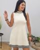 Mini φόρεμα από πλεκτό ελαστικό ύφασμα με βισκόζη. Το φόρεμα είναι σε άνετη εφαρμογή , αμάνικο και με ελαφριά Α γραμμη. Έχει λεπτομέρειες με ρίγα σε άλλο χρώμα στο τελείωμα και στο ζιβάγκο.