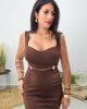 Mini φόρεμα από ελαστικό μαλακό ύφασμα. Το φόρεμα είναι σε άνετη γραμμή πάνω στο σώμα, με τέλεια εφαρμογή στο ντεκολτέ, cut out στην κοιλιά και διακοσμητικά χρυσά κουμπιά . Το φόρεμα κουμπώνει με φερμουάρ στην πλάτη. Το προϊόν είναι ελληνικής εταιρείας.