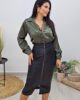 Ψηλόμεση φούστα από ελαστική δερματίνη. Η φούστα είναι σε άνετη εφαρμογή , κουμπώνει μπροστά με φερμουάρ και σμιλεύει χωρίς να διαγράφει. Το προϊόν είναι ελληνικής εταιρείας.