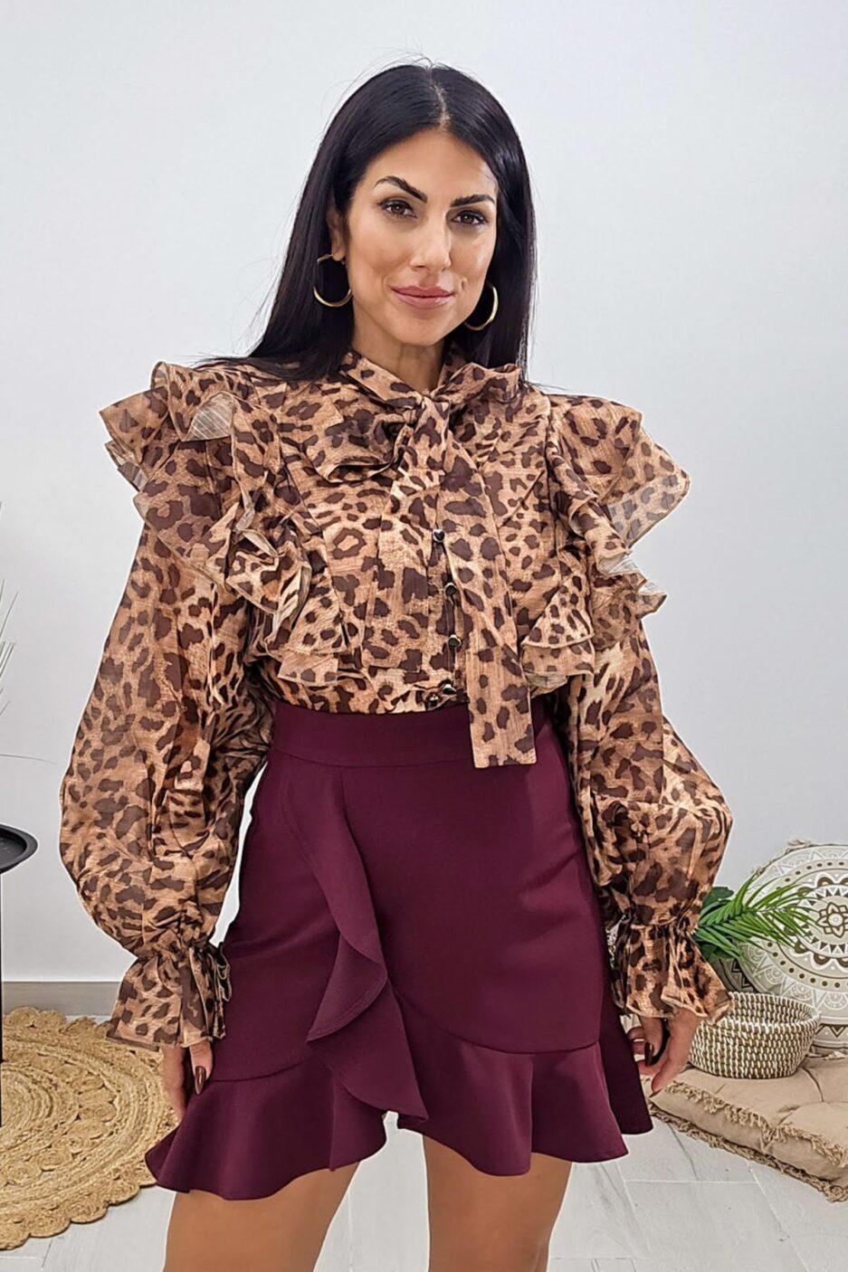 Μίνι φούστα από σταθερό ύφασμα. Η φούστα κουμπώνει με φερμουάρ στο πλάι είναι ασύμμετρη με λεπτομέρειες βολάν που της δίνουν πιο girly τόνο. Το προϊόν είναι ελληνικής εταιρείας
