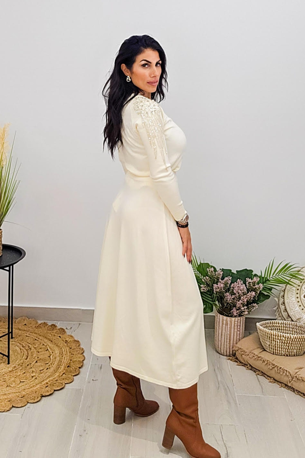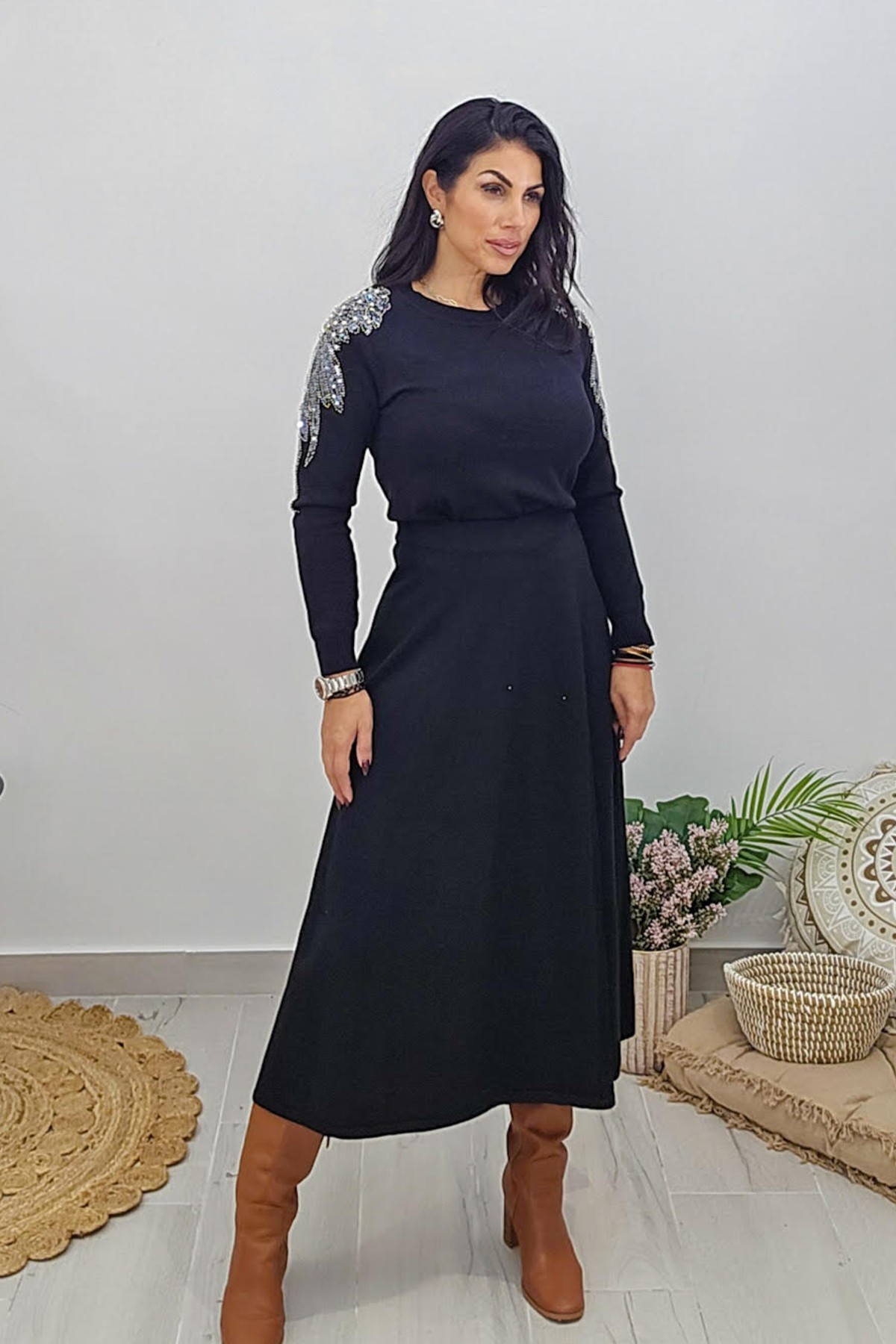Φούστα midi από ελαστικό πλεκτό ύφασμα. Η φούστα είναι σε άνετη εφαρμογή με λάστιχο στην μέση και πλούσιο ύφασμα .
