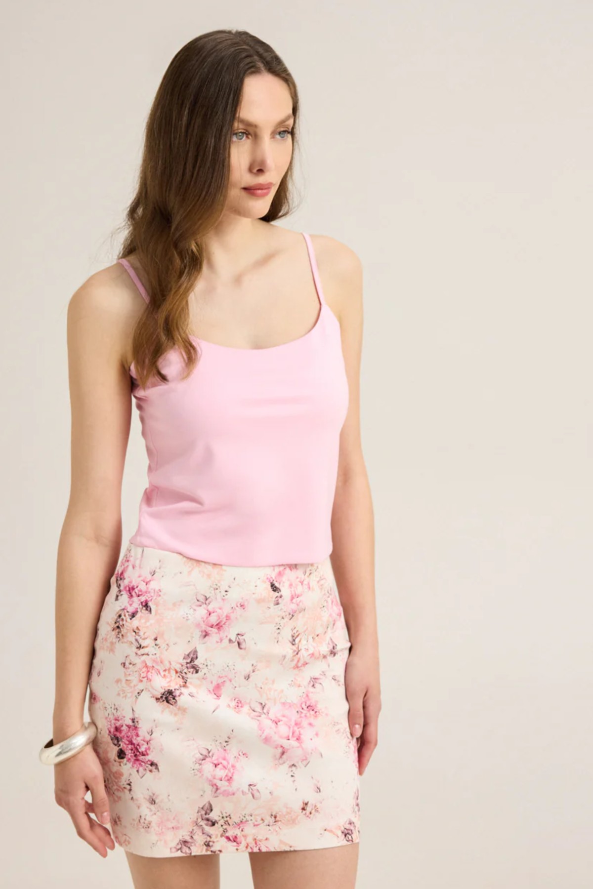 Φούστα από ελαστικό εμπριμέ τύπου τζιν ύφασμα. Η φούστα είναι σε άνετη εφαρμογή , κουμπώνει πίσω με φερμουάρ και δεν διαγράφει. Το προιόν είναι ελληνικής εταιρείας.