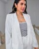 Set παντελόνα και σακάκι από σταθερό τύπου λινό ύφασμα. Το παντελόνι είναι άνετο με λάστιχο πίσω στην μέση, κουμπώνει με κουμπί και φερμουάρ, έχει τσέπες στο πλάι και πιέτες. Το σακάκι είναι μακρύ oversized κουμπώνει μπροστά με κουμπί , έχει διακοσμητικές τσέπες με καπάκι και εσωτερικά έχει φόδρα.