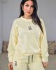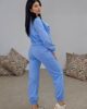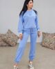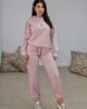 Set παντελόνι και τοπ από ελαστικό φούτερ. Το μπλουζάκι είναι άνετο με λεπτομέρεια άσπρο τελείωμα στα μανίκια και στην λαιμόκοψη και έχει σχέδιο με strass σε σχήμα αρκουδάκι. Το παντελόνι είναι άνετο με λάστιχο στην μέση, κορδόνι που σφίγγει και λάστιχο στο τελείωμα στο πατζάκι. Στο πλάι έχει τσέπες και αρκουδάκι με strass από την μια μεριά.